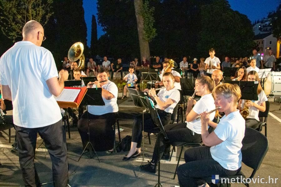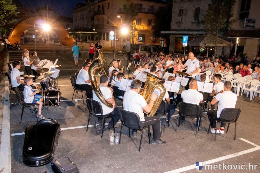 30.6.2019. - Ustalilo se da Gradska glazba Metković početkom ljeta održi koncert na Trgu kralja Tomislava. Sinoć je to bilo ispred Hotela Narona, što se također pokazalo dobrom mjestom jer su se posjetitelji rasporedili na terasi hotela i vrtnim stolicama gledališta, ali ponovno je bio pun i nekada poznati zidić.