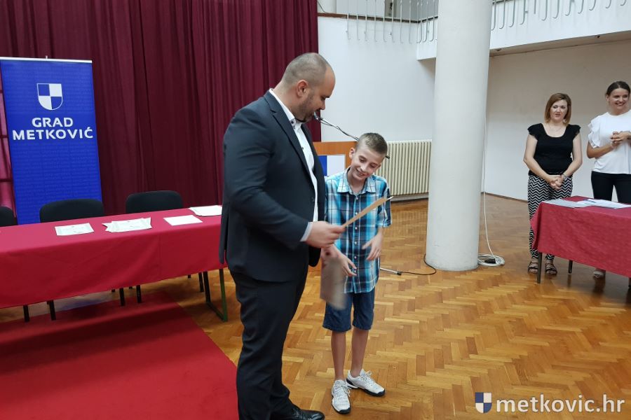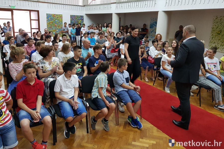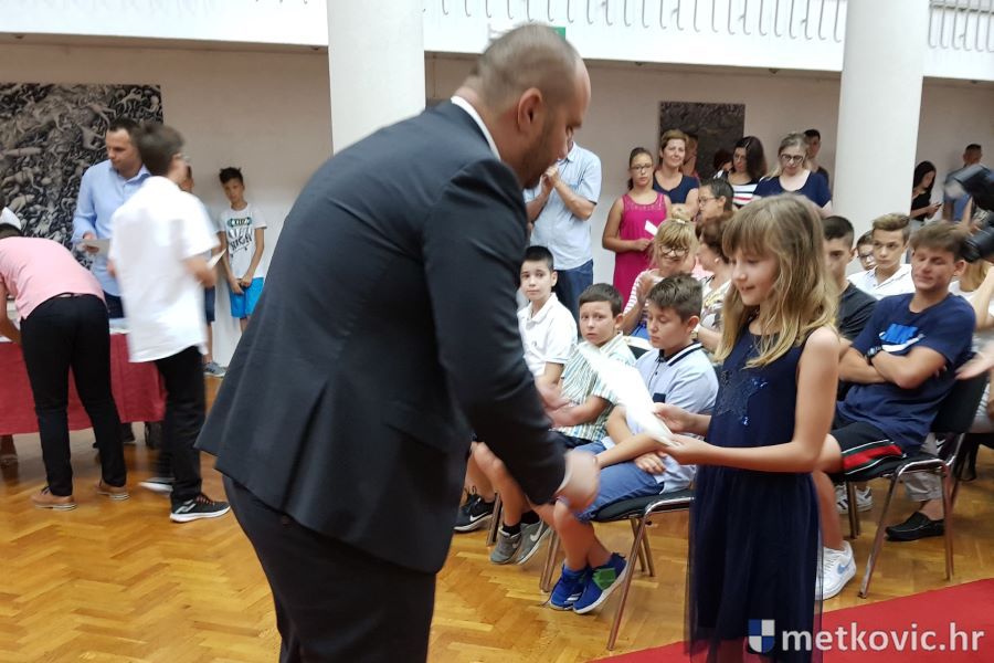 11.7.2019. - Metkovski gradonačelnik Dalibor Milan jučer je u Galeriji GKS-a primio više od 170 učenika i mentora četiriju metkovskih škola te im uručio priznanja za promicanje ugleda Metkovića sudjelovanjem na državnim natjecanjima i smotrama. Osvajačima prvih triju mjesta uručio je i novčane nagrade.