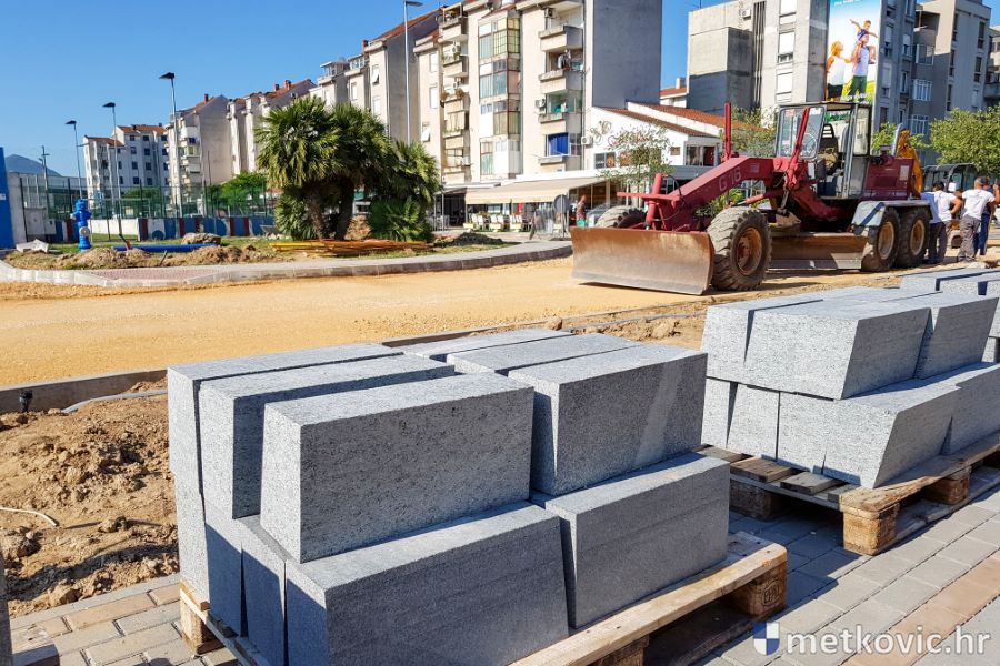 Metković, 17.7.2019. - Radovi na uređenju Ulice A. Starčevića te na kružnim raskrižjima s ulicama don R. Jerkovića, kralja Zvonimira i Matice hrvatske stigli su u fazu asfaltiranja dijela te ulice od raskrižja s don R. Jerkovića do ulaza u Sportsku.