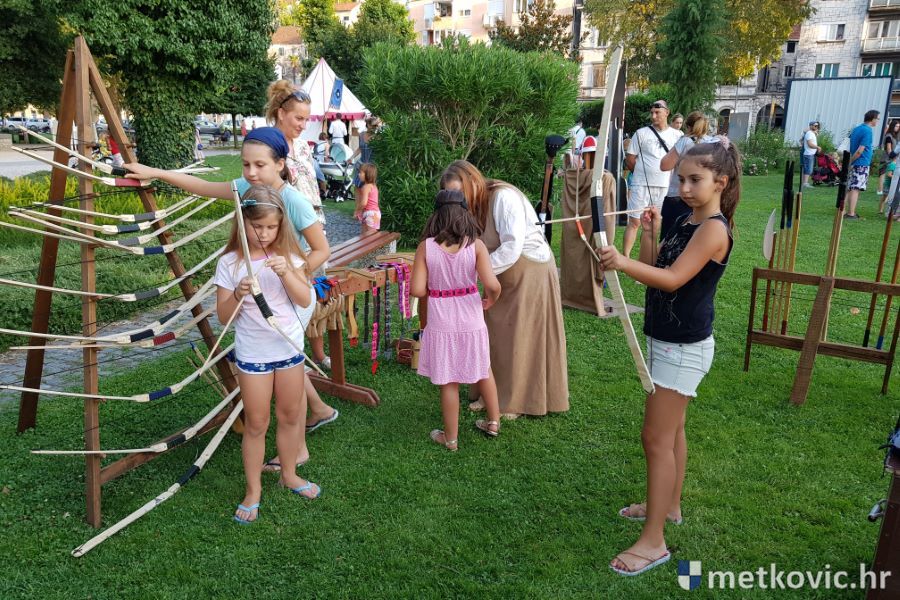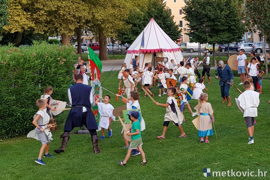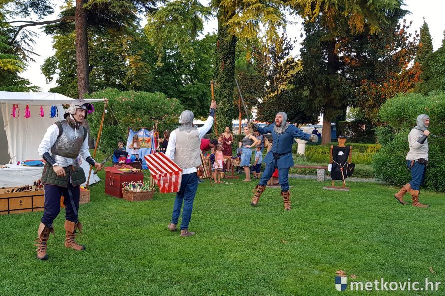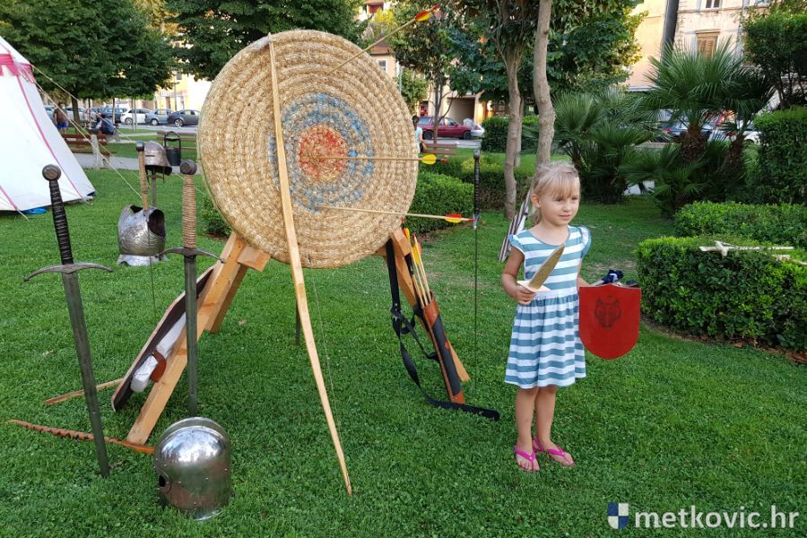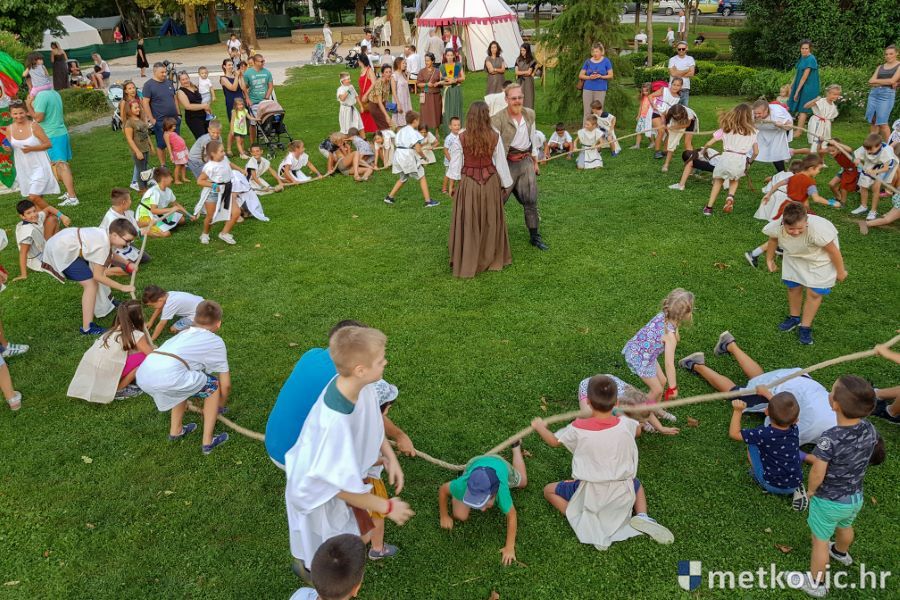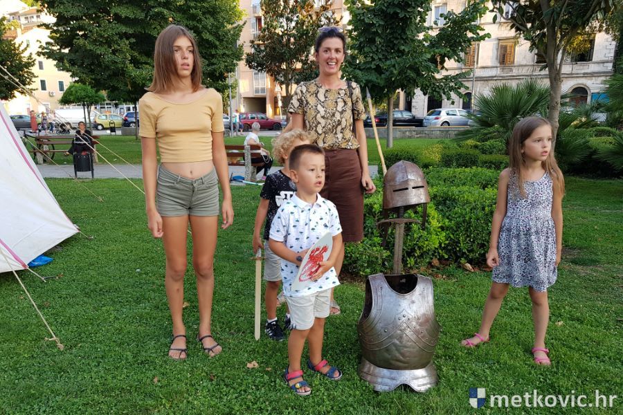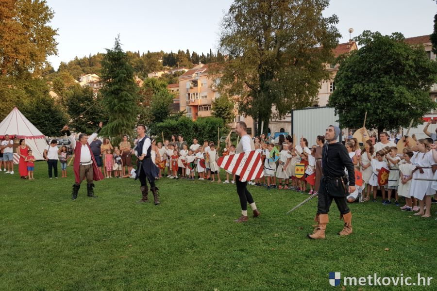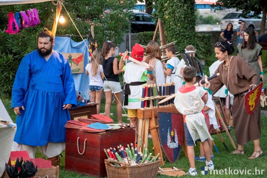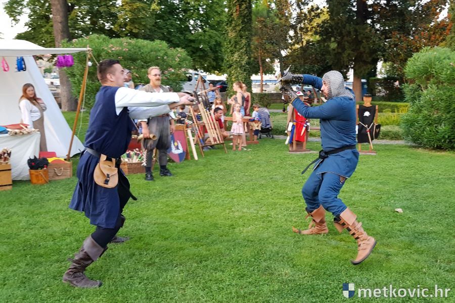 Metković, 10.8.2019. - Drugoga dana manifestacije 'Dani Neretvanske kneževine' u Gradskome se parku u popodnevnim i večernjim satima odvijao atraktivan program, u kojemu su uz male neretvanske gusare svoje vještine prikazali srednjovjekovni vitezovi, iluzionisti, lakrdijaši i slična 'zanimanja' kojima je obilovao srednji vijek.