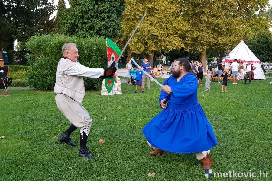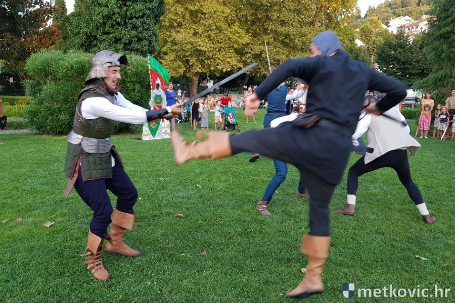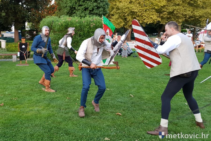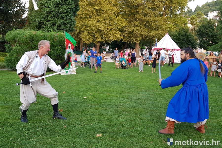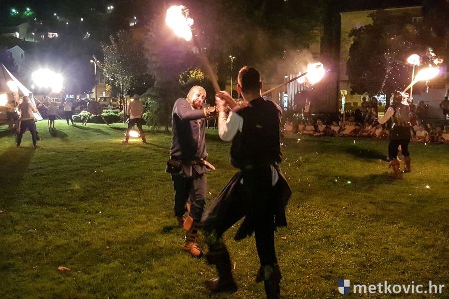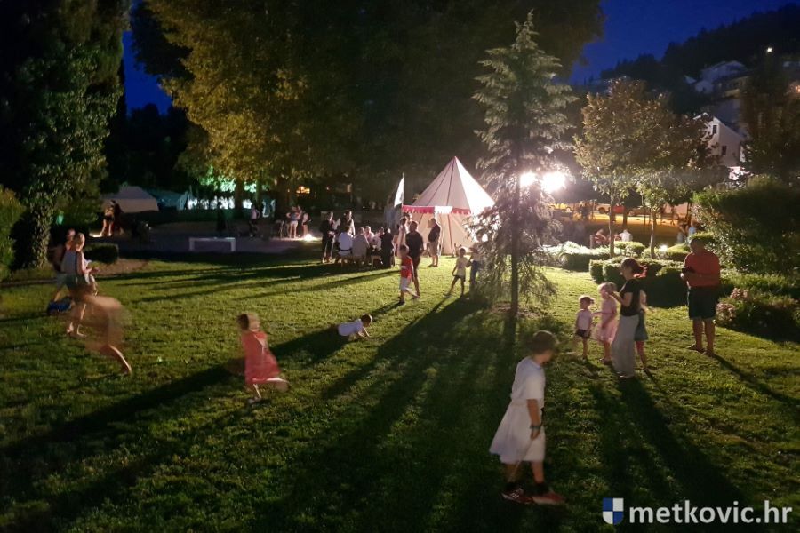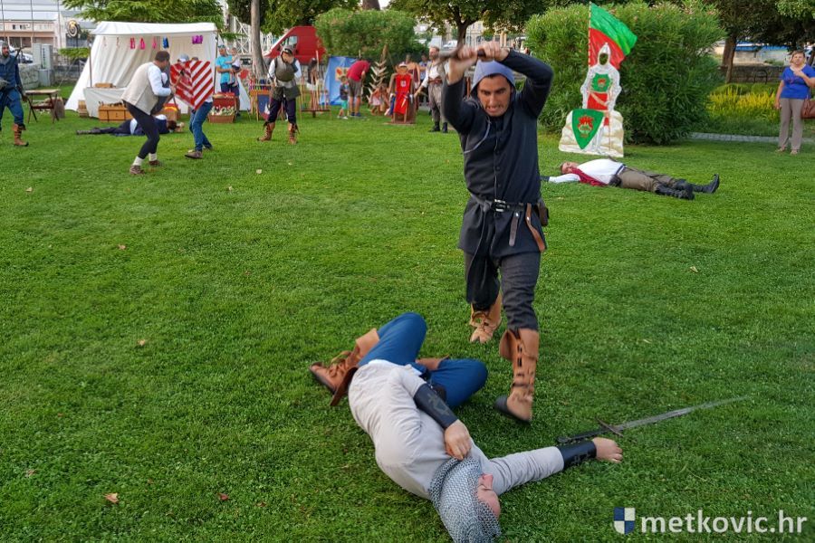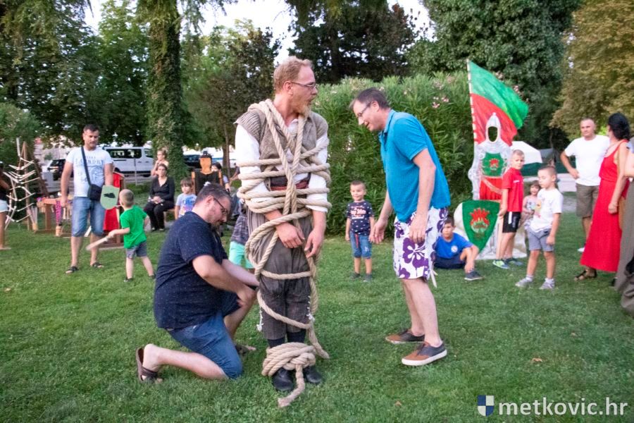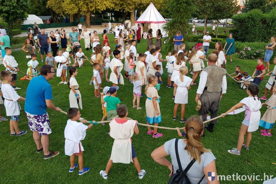 Metković, 10.8.2019. - Drugoga dana manifestacije 'Dani Neretvanske kneževine' u Gradskome se parku u popodnevnim i večernjim satima odvijao atraktivan program, u kojemu su uz male neretvanske gusare svoje vještine prikazali srednjovjekovni vitezovi, iluzionisti, lakrdijaši i slična 'zanimanja' kojima je obilovao srednji vijek.