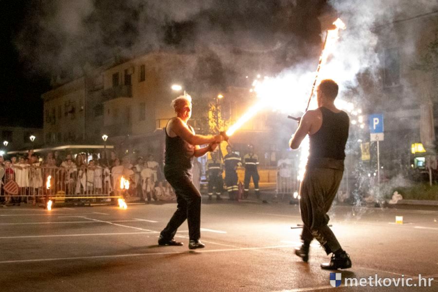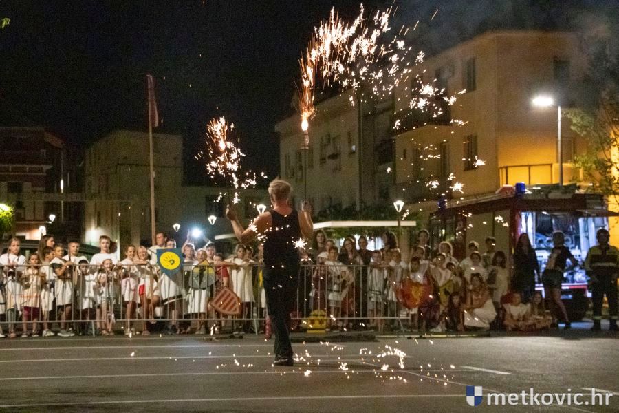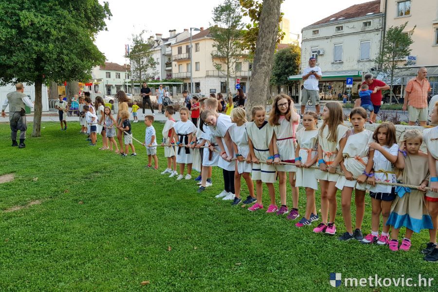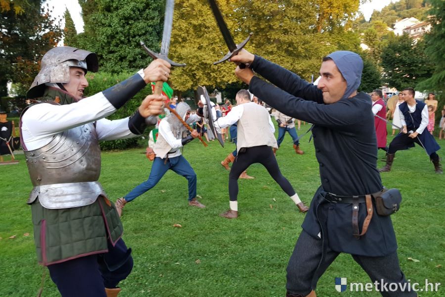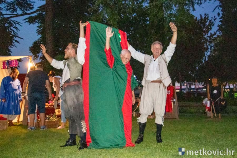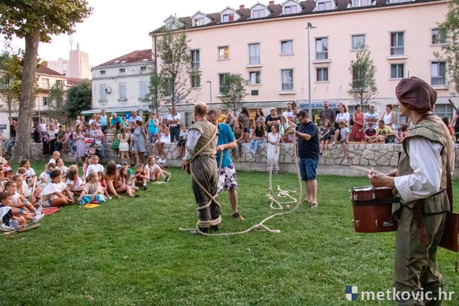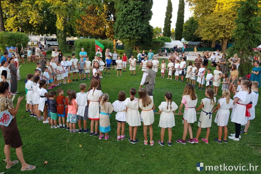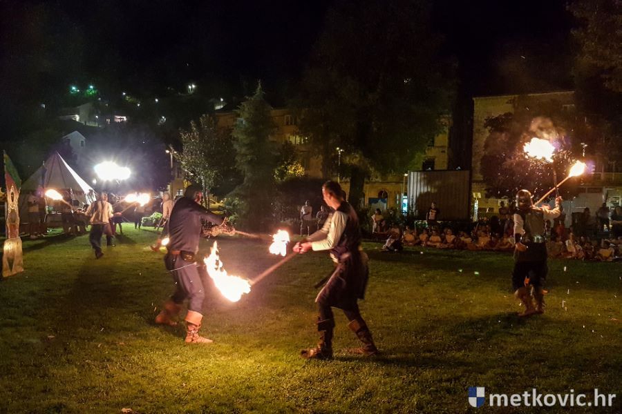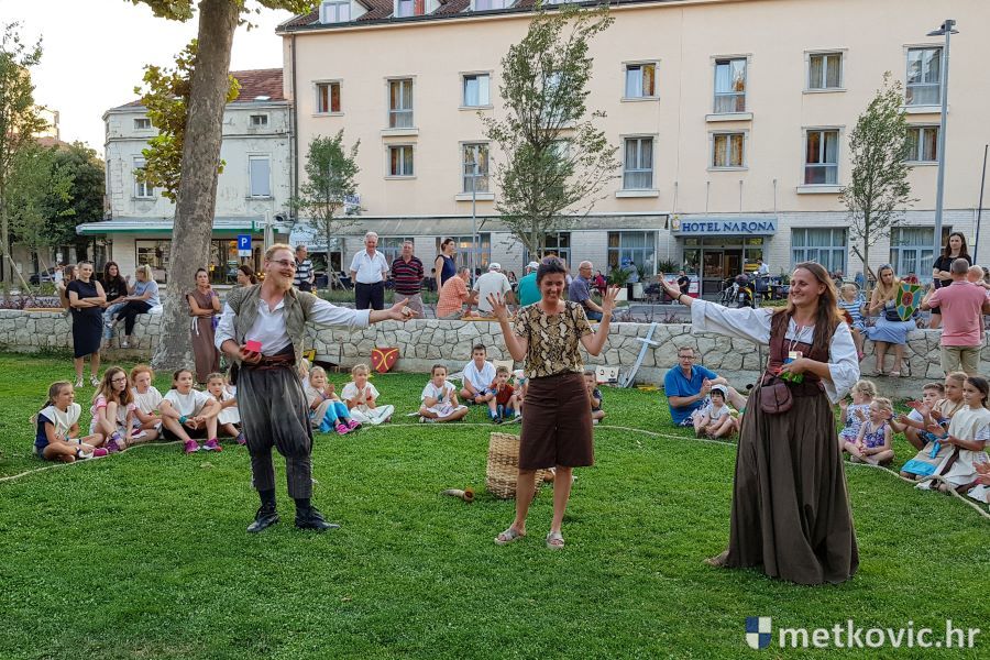 Metković, 10.8.2019. - Drugoga dana manifestacije 'Dani Neretvanske kneževine' u Gradskome se parku u popodnevnim i večernjim satima odvijao atraktivan program, u kojemu su uz male neretvanske gusare svoje vještine prikazali srednjovjekovni vitezovi, iluzionisti, lakrdijaši i slična 'zanimanja' kojima je obilovao srednji vijek.