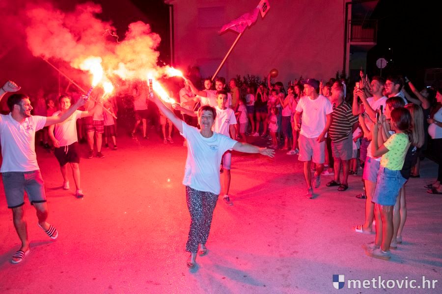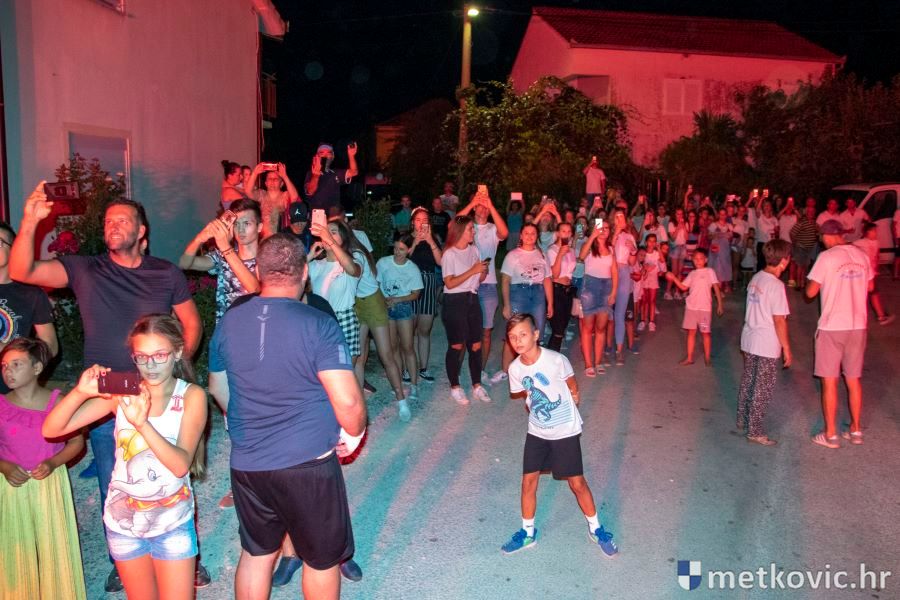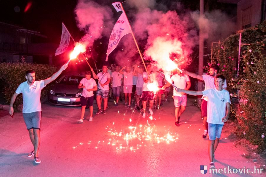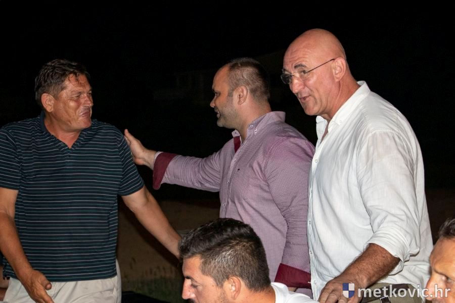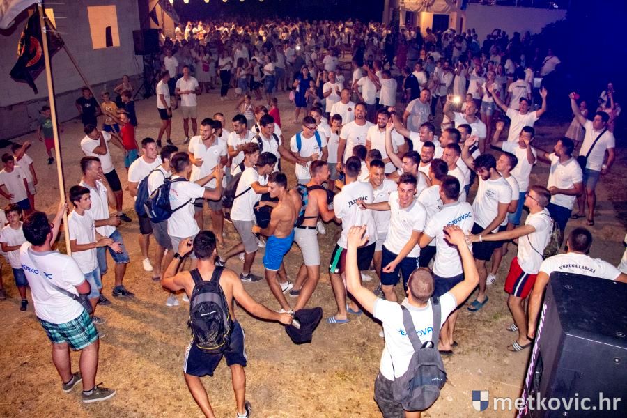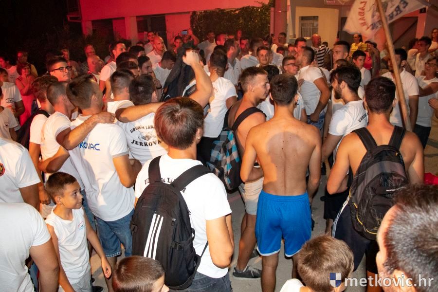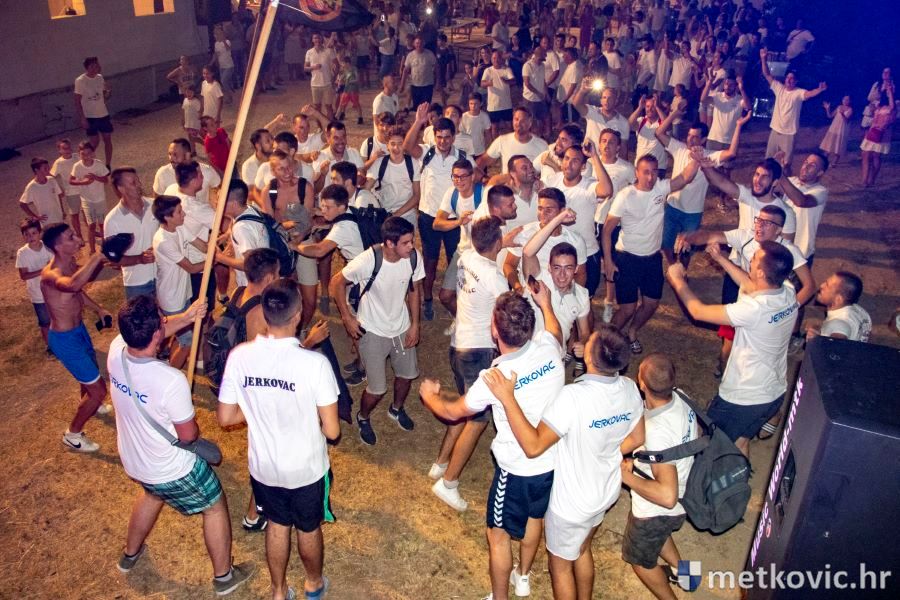 Na livadi ispred kuće obitelji Ćelić, domaćina fešte kojima su se u provedbi te tradicionalne manifestacije pridružili brojni susjedi, okupilo se preko pet stotina Jerkovčana i njihovih gostiju. Svečano su uz bakljadu dočekani lađari te popraćeni do pozornice na kojoj ih je čekao Branko Medak Vertigo. Naravno, zapjevalo se: Nek bili galeb nad vama leti, neka vas čuva Nikola sveti. Složno ko jedan od krme do prove Jerkovac ide u pobjede nove. Bila je to prigoda da se Jerkovčani i župljani Župe sv. Nikole biskupa opraste od svoga kapelana don Miroslava Rubića koji nakon četiri godine služenja u Metkoviću odlazi na Čiovo. Predsjednici obaju udruga Ante Ćelić i Ante Pehar predali su mu za uspomenu prigodne darove – model neretvanske lađe i majicu s amblemom Udruge veterana na kojoj je njihovo geslo In hoc signo vinces. Nakon toga je don Miroslav blagoslovio okupljene i jela koje će blagovati pa su na stolove iznesena raznovrsna domaća jela. Fešta je mogla započeti. Mi smo zabilježili njezin prvi dio.