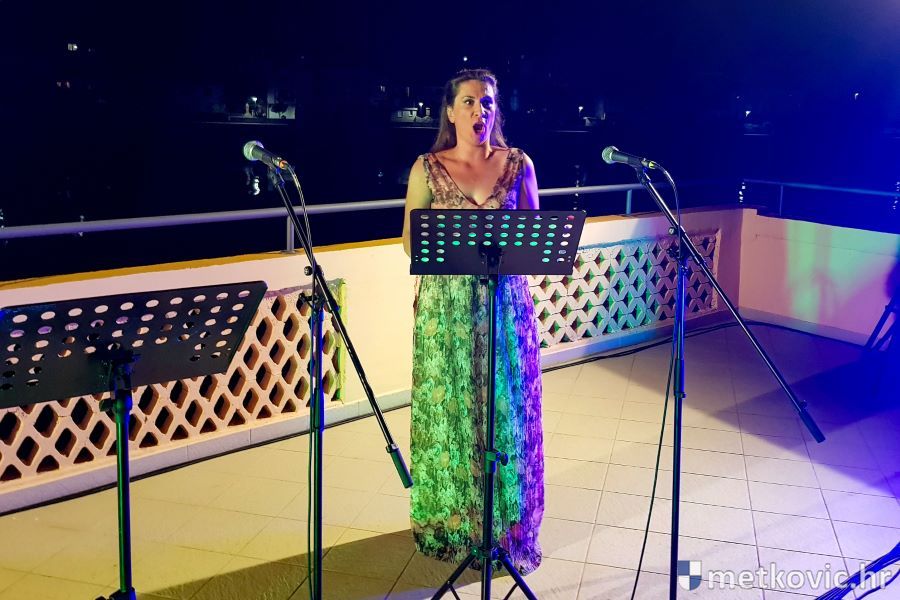 13.8.2019. - Članovi splitskoga HNK-a Bjanka Ivas, Stefan Kokoskov, Antonija Teskara i Ivana Štimac za klavirom sinoć su na terasi Ljetne scene GKS-a održali koncert 'Najljepše operne arije pod neretvanskim nebom' koji je privukao prilično brojnu publiku.