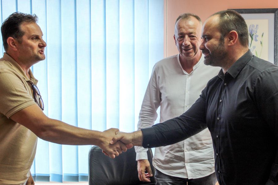 Metković, 9.9.2019. - Gradonačelnik Dalibor Milan je u prostorijama Grada Metkovića s ravnateljem Srednje škole Metković Marijom Obradovićem i ravnateljem Gimnazije Metković Jozom Jurkovićem potpisao ugovore o darivanju.