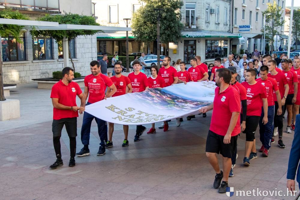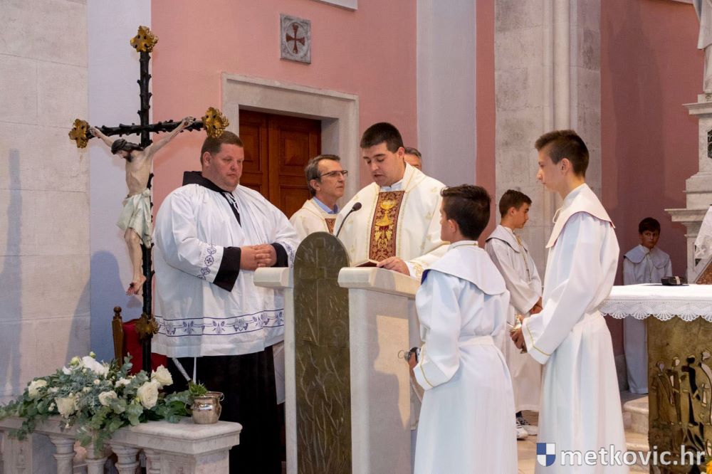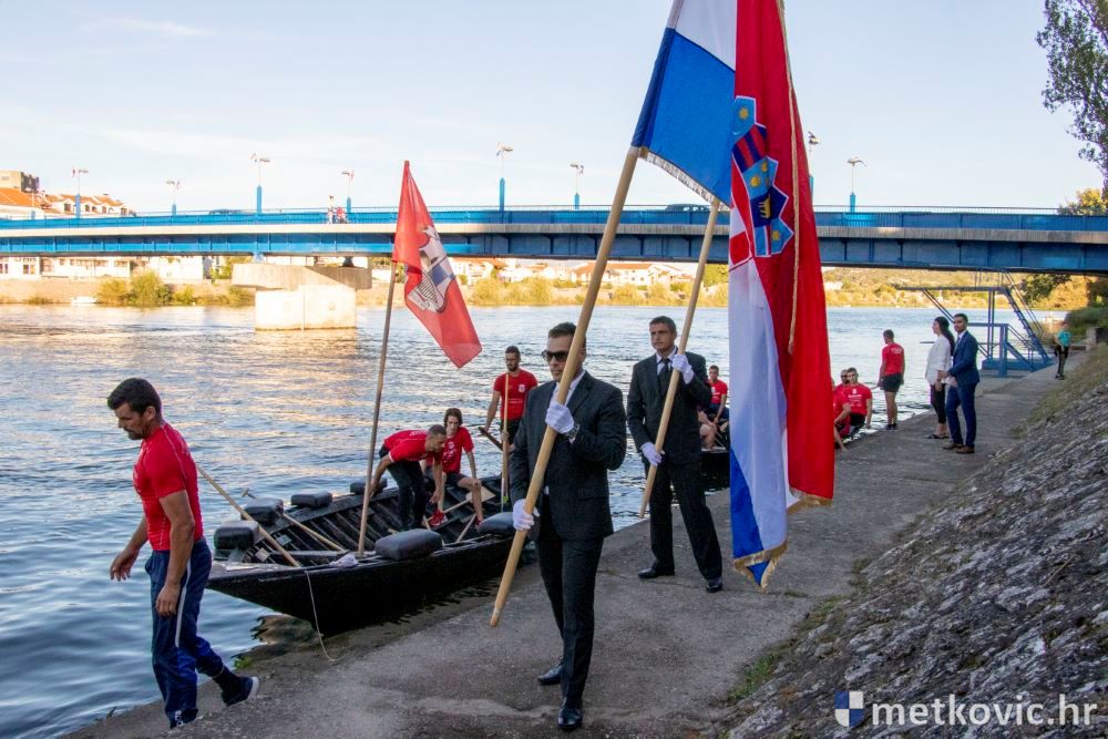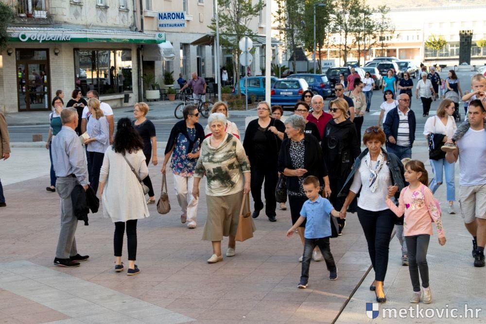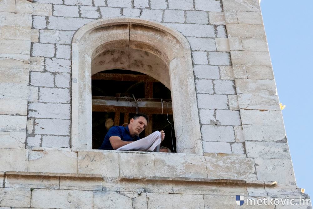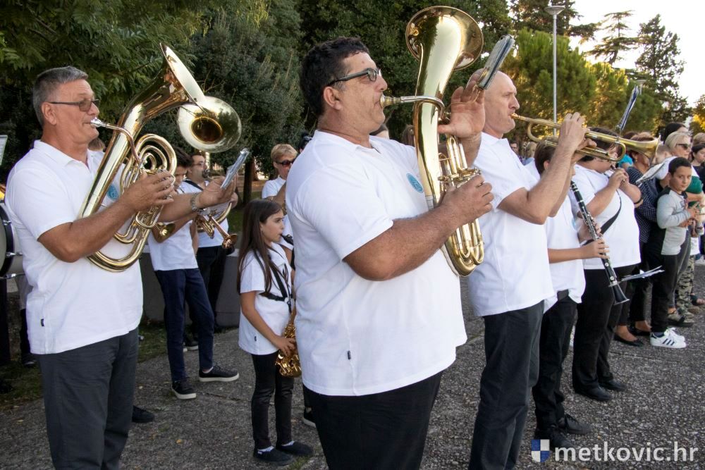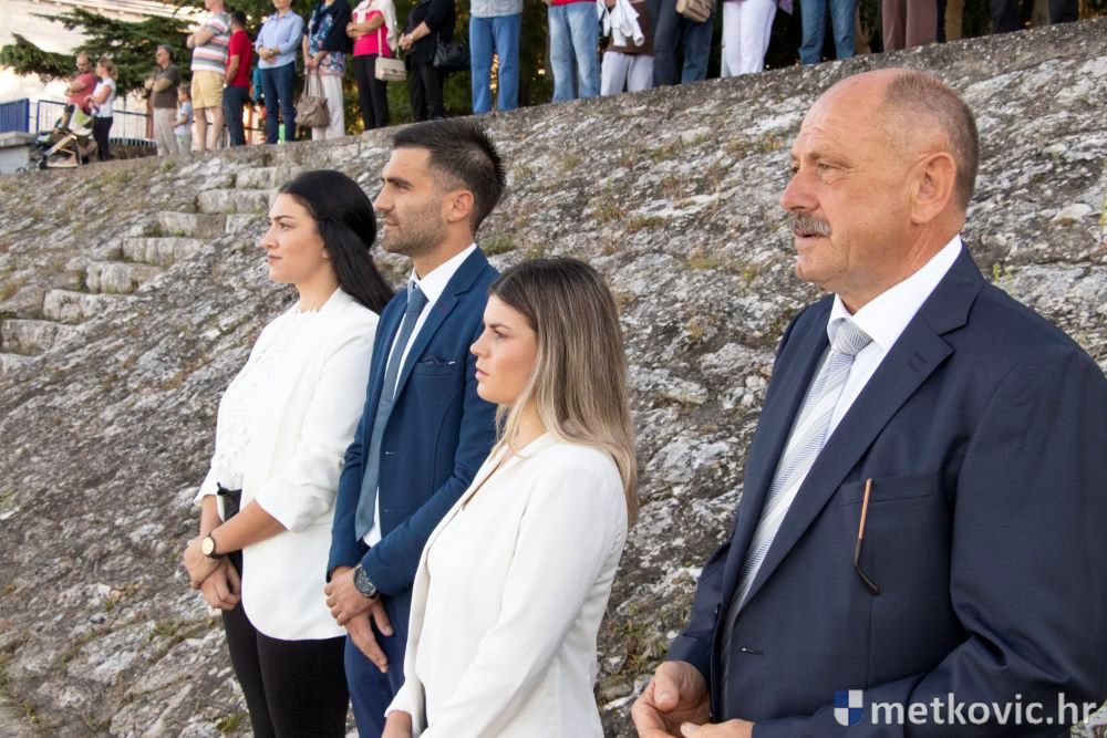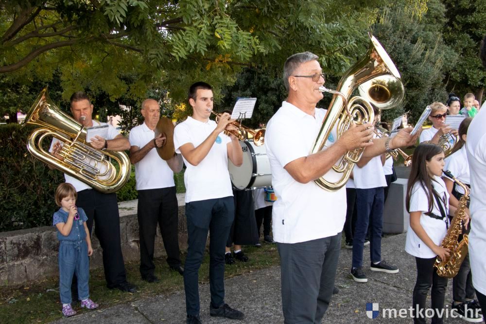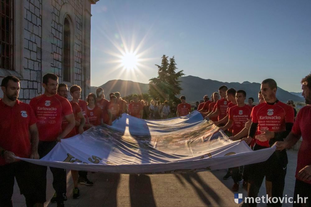 Praćeni građanima i Gradskom glazbom Metković potom su u mimohodu krenuli preko Trga i Ulicom Vladimira Nazora do župne crkve, pred kojom ih je čekao župnik fra Ante Bilokapić, koji je blagoslovio svijeću i zastavu. Zastava je nakon prigodne ceremonije izvješena na crkvenome zvoniku, a svijeća svečano unesena u crkvu. Potom je započelo misno slavlje, što ga je u suslavlju sa župnikom i župnim kapelanom fra Darijom Sinkovićem predvodio fra Šimun Bilokapić.
