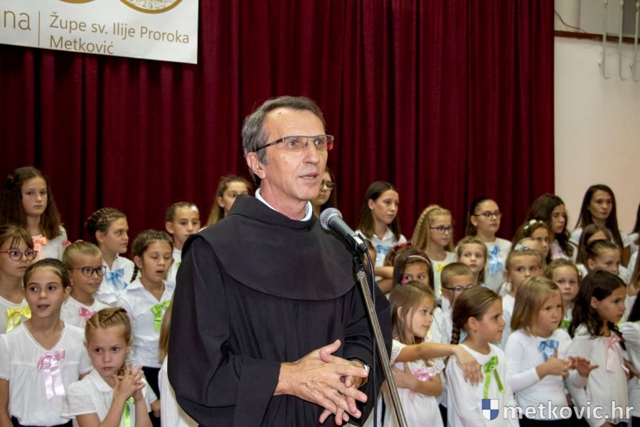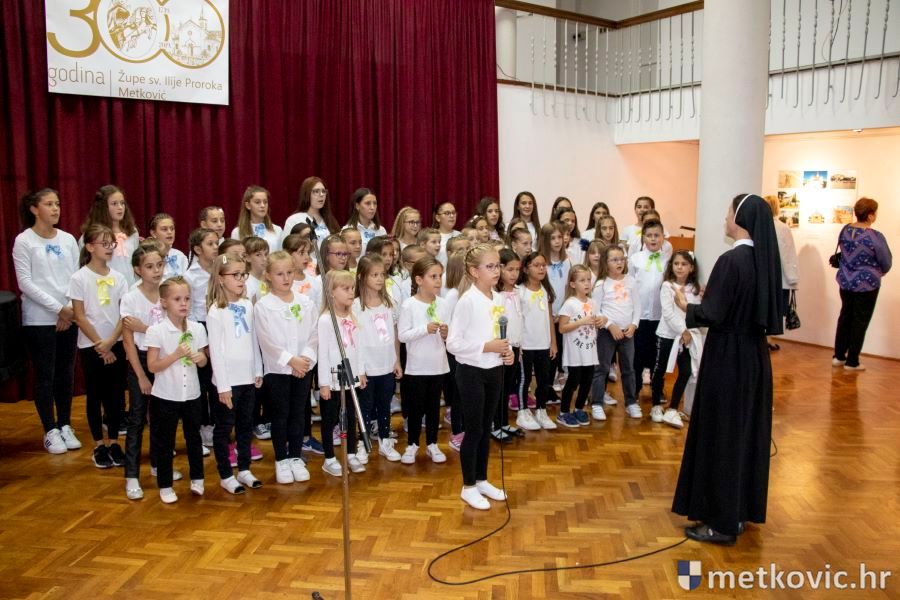Metković, 29.9.2019. - Drugoga dana desetodnevne proslave 300-te obljetnice utemeljenja Župe sv. Ilije proroka u Metkoviću, u župnoj je crkvi fra Josip Repeša predvodio misu na kojoj je pjevao Dječji župni zbor pod ravnanjem č. s. Mile Deak. Nakon toga je u Galeriji GKS-a otvorena izložba fotografija '300 godina vjerni Kristu i Crkvi'.