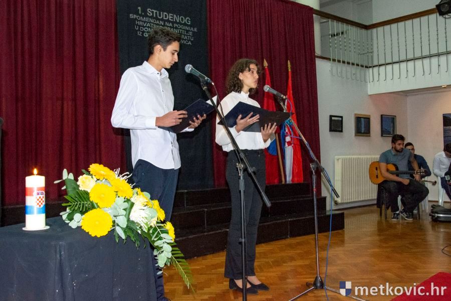 Komemoraciji u Galeriji GKS-a uz roditelje, udovice i djecu poginulih te njihove suborce i sugrađane nazočili su gradonačelnik Dalibor Milan sa svojim zamjenicima i zamjenica župana Žaklina Marević. Poslije hrvatske himne u izvođenju Mješovite klape Sveti Nikola, gradonačelnik se u kraćem obraćanju osvrnuo na žrtvu osamnaestorice naših sugrađana i našu obvezu da čuvamo uspomenu na njih. Nakon toga je započeo glazbeno-recitatorski program u kojemu su uz Klapu sudjelovali mješoviti zborovi iz župa sv. Ilije i sv. Nikole te VIS Viatores, a odabrane stihove recitirali su učenici Gimnazije Metković Laura Mandić, Mia Ćubela, Mihael Vranješ i Matija Dominiković. Program su pripremile i učenike uvježbale profesorice Ivanka Ujdur i Martina Pačić, dok su ga vodili Katarina Pratežina i Roko Crnčević.