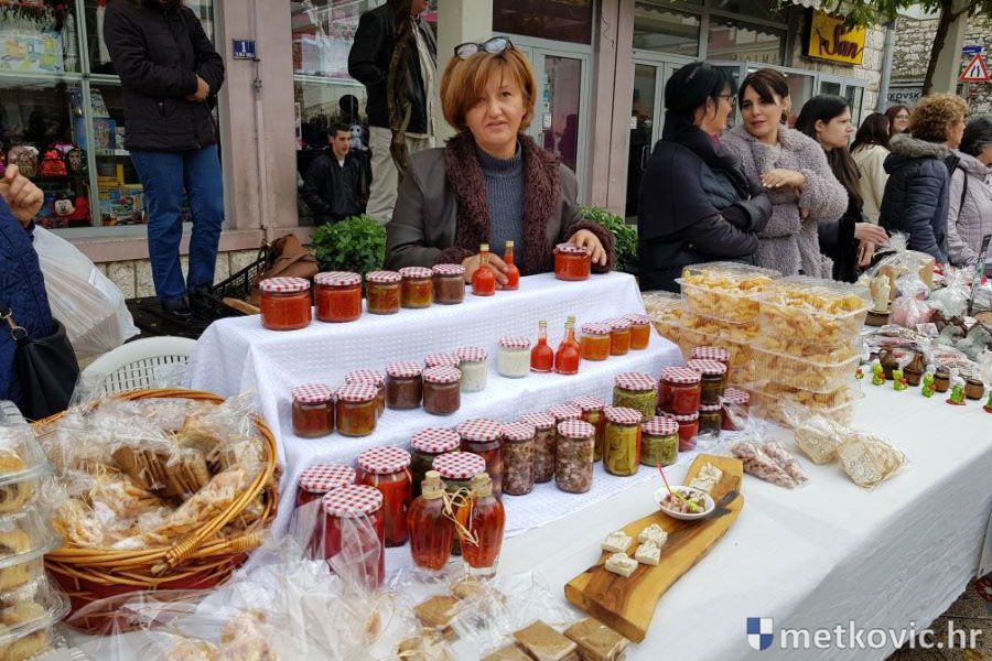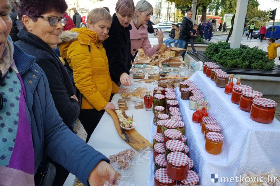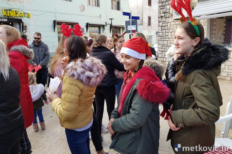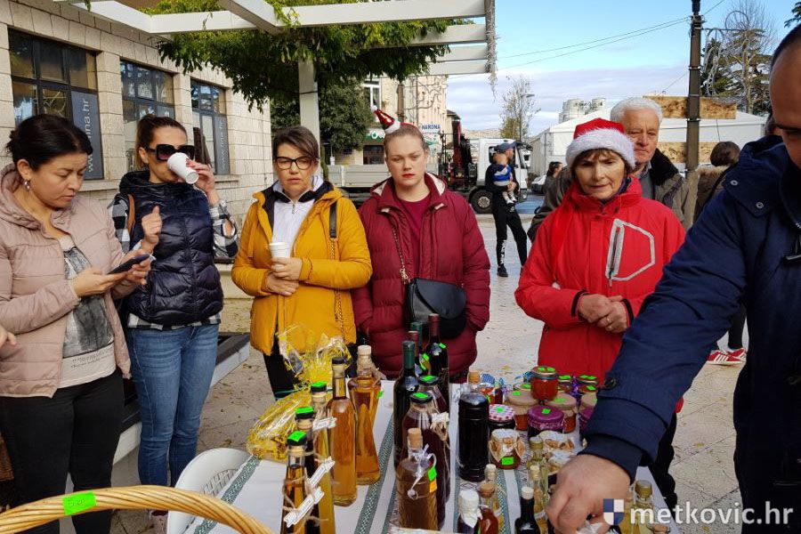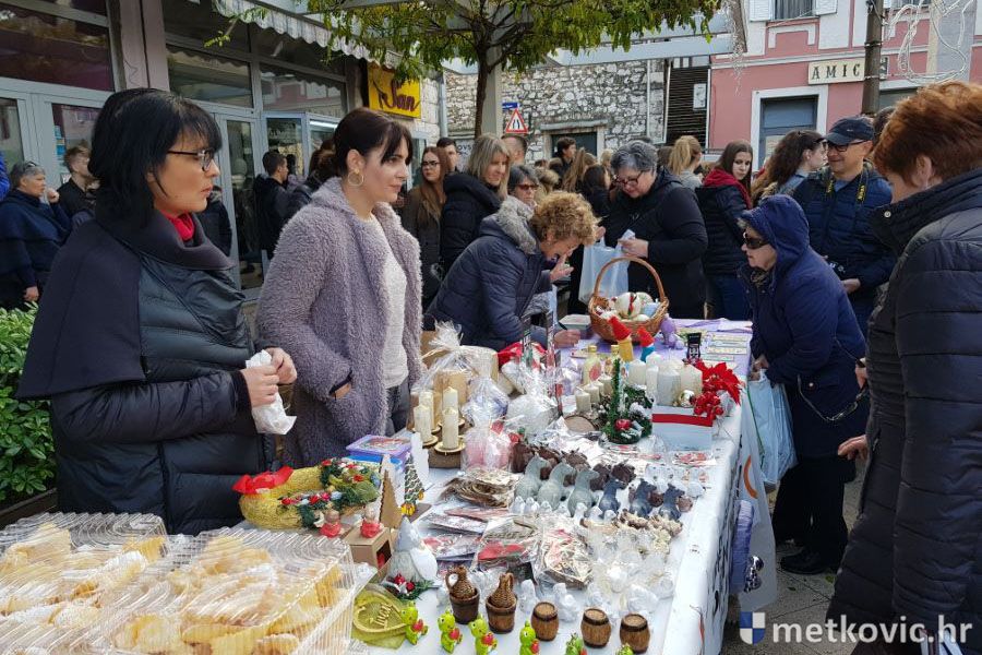 Metković, 16.12.2019. - Nekada dvije manifestacije; 'U susret Božiću' u organizaciji UKS-a Metković i 'Slatki Božić u Neretvi' u organizaciji TZ grada Metkovića, spojene su u jednu pa je u subotu na Trgu kralja Tomislava održan prigodan program uz sajam slastica i rukotvorina.