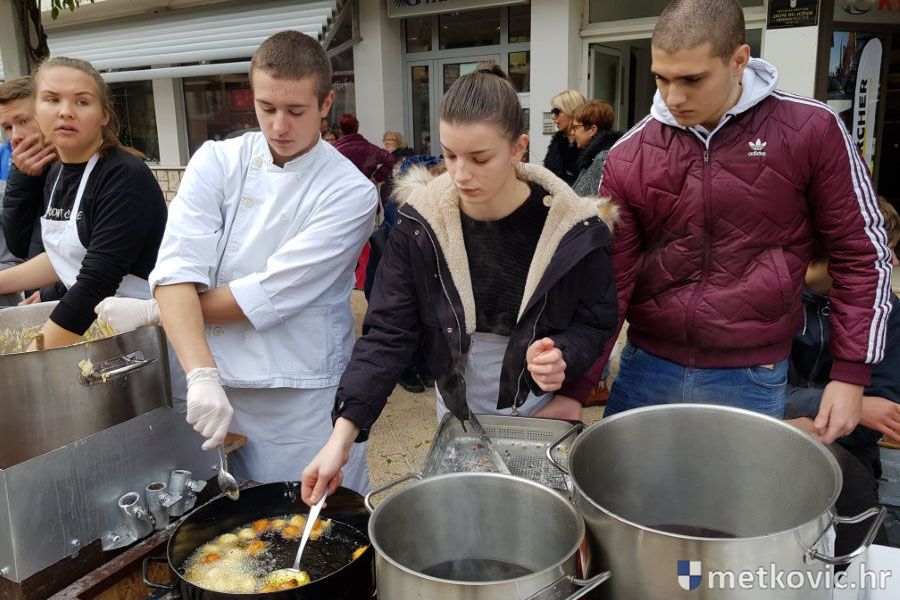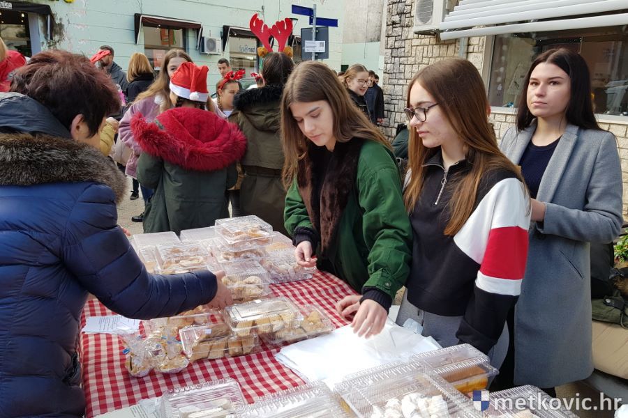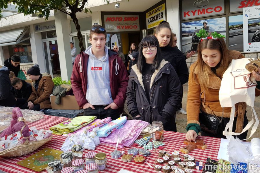 Na štandovima se našlo svega. Kolače, fritule i tople napitke pripremali su učenici SŠ Metković, a novac dobiven dobrovoljnim prilozima namijenjen je školskoj Udruzi mladih o. Ante Gabrića.