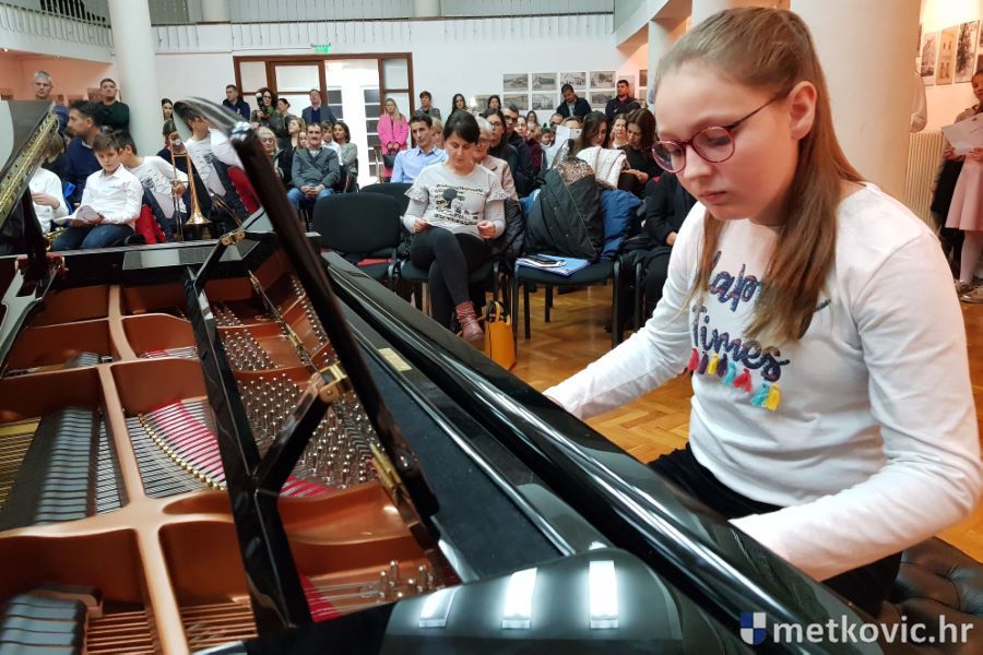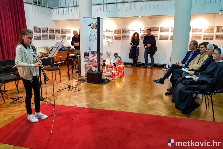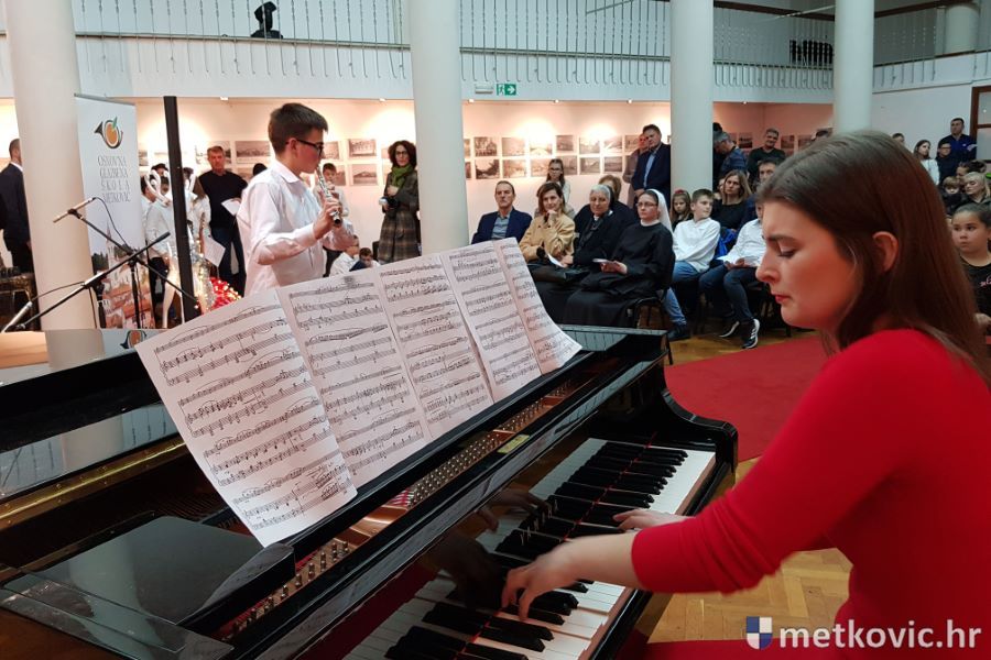 19.12.2019. - Učenici Osnovne glazbene škole Metković sinoć su u Galeriji GKS-a nastupali na tradicionalnome Božićnom koncertu. Ukupno 26 učenika predstavilo se svirajući na klaviru, trubi, harmonici, gitari, klarinetu, trombonu, saksofonu i flauti.
