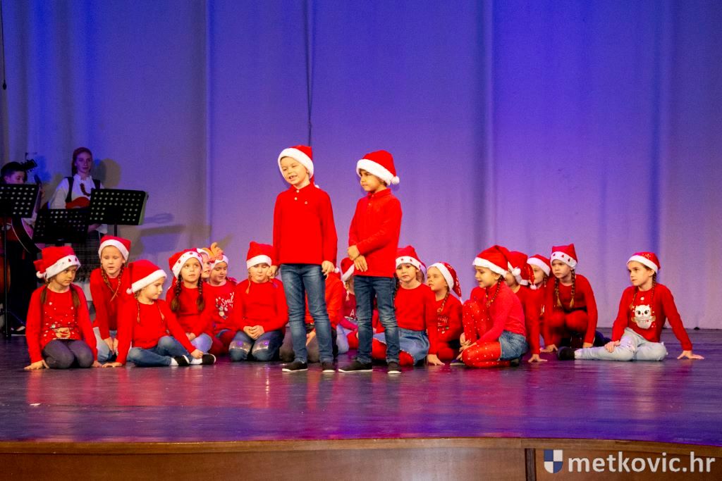 Nakon što je Marta Gabrić recitirala Dobrodošlicu Božiću, na pozornici su se smjenjivale folklorne skupine, od najmlađih prema starijim uzrastima. Pjevalo se i plesalo u pratnji Mandolinskoga orkestra, a čule su se i različite kolende: neretvanska, iz Dubrovačkoga primorja i Rijeke dubrovačke te iz Vrbnnja na Hvaru. Poseban dar na kraju bila je izvedba Neretvanske poskočice, koja je oduševila publiku, a koja je nastala prema koreografiji prof. Vidoslava Bagura.