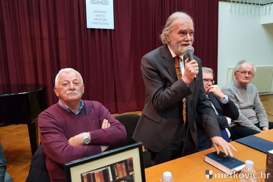 U nastavku je Petrač govorio o knjizi 'Ivan Slamnig – Izabrana djela', koja se našla u matičinoj biblioteci 'Stoljeća hrvatske književnosti'. U njoj je na 621 stranici sabrana Slamnigova poezija i prozna djela te radiodrame, eseji, studije, kritike itd., a u dodatku se nalaze i fotografije. Jedna od njih je iz Metkovića, kada je 1999. Slamnig na pozornici GKS-a primio Nagradu Grada Metkovića za životno djelo. Inače, manje je poznato i to da je Slamnig do sada jedini Metkovac koji je postao članom Hrvatske akademije znanosti i umjetnosti. O Slamnigu i njegovim djelima govorio je i prof. dr. sc. Ivan Bošković s Filozofskoga fakulteta Sveučilišta u Splitu .