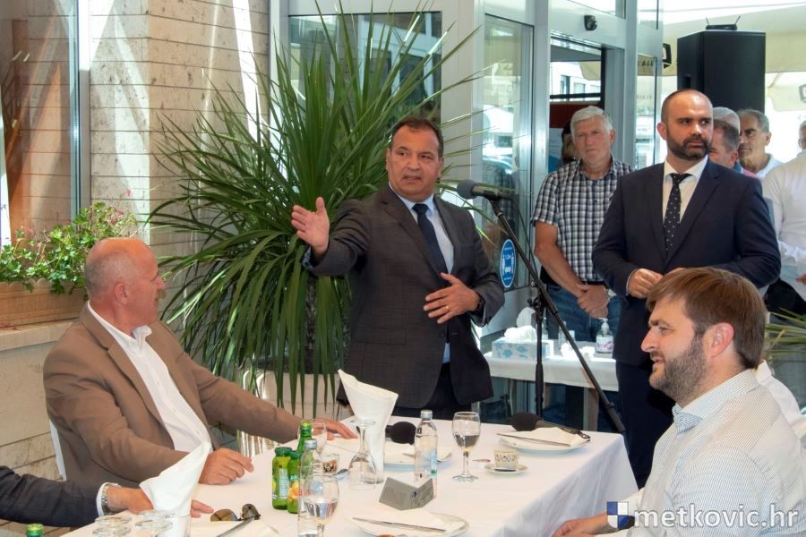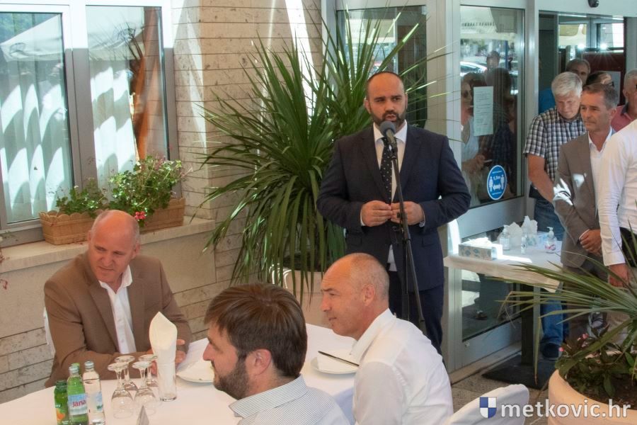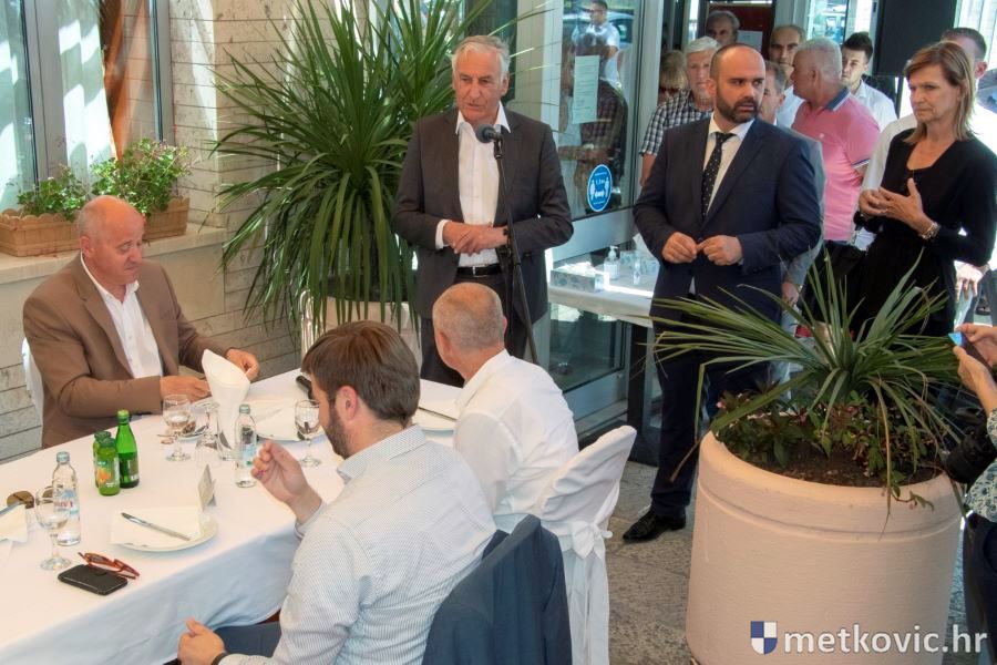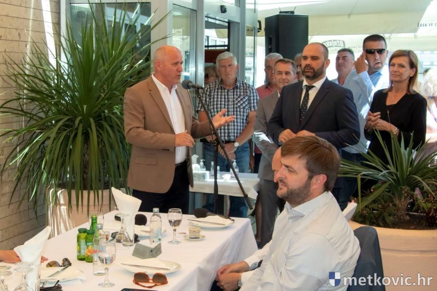 Goste, članove i simpatizere stranke ispred Hotela 'Narona' pozdravio je metkovski gradonačelnik Dalibor Milan, iskazavši u više navrata izvrsnu suradnju Grada sa županijskom i središnjom vlasti u Zagrebu. Ona se očitije nizom projekata koji su izvedeni te onih koji su u tijeku ili su u fazi kompletiranja potrebne dokumentacije. Spomenuo je rješenje problema prometa u ulici Ivana Gundulića te spoj Metkovića na autocestu, koji bi trebao biti završen za godinu dana. U Ulici Stjepana Radića (prema granici) radit će se treći i četvrti prometni trak, a kao najveći i najvažniji je 500 mil. kuna vrijedan projekt aglomeracije Metković, za koji je već proveden natječaj za odabir izvođača.