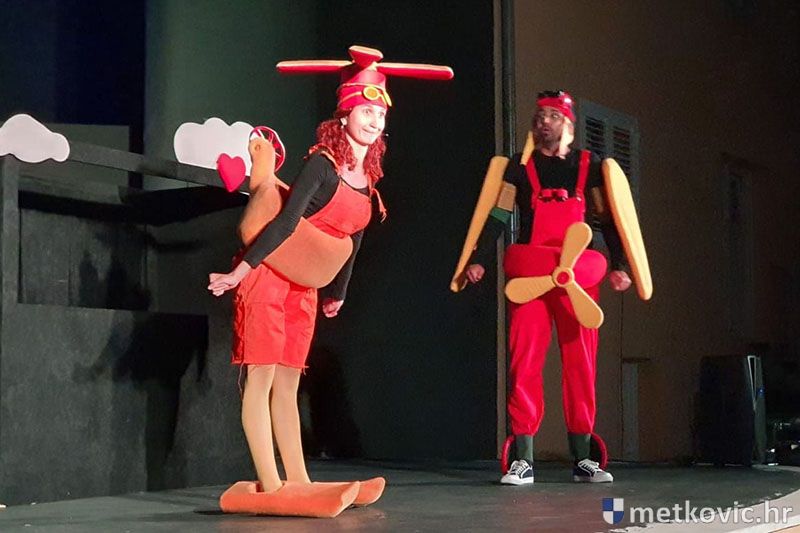 22.7.2020. - Popularnu dječju predstavu 'Avijonko se ženi' sinoć su u sklopu Metkovskoga ljeta na pozornici Ljetne scene GKS-a izveli glumci Gradskoga kazališta 'Scena' Gorica Tena Pataky i Mirko Ilibašić.