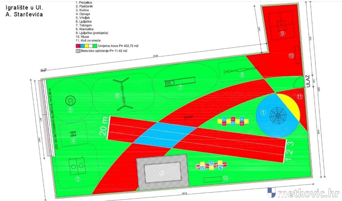 28.7.2020. - Započeli su radovi na obnovi dječjeg igrališta u Ulici Ante Starčevića u Metkoviću, kojima će se zamijeniti kompletna podloga i sve sprave, postaviti antistres podloga prilagođena standardima te iznad nje umjetna trava namijenjena dječjim igralištima.