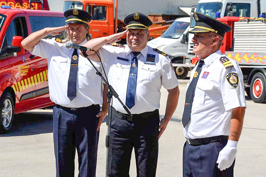 Nakon postrojavanja, okupljenima se obratio zapovjednik Jure Pilj koji je istaknuo kako je, odlukom tadašnjega gradskoga Poglavarstva, JVP Metković osnovana 2000. godine, a operativno je počela djelovati 2003. Od tada do danas, imali su na tisuće intervencija, a osim u požarima, bili su važan segment u suočavanju s poplavama, epidemijom koronavirusa te brojnim drugim izvanrednim situacijama.