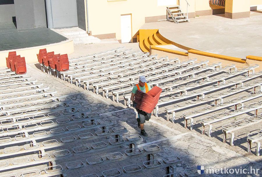 Metković, 27.8.2020. - Sukladno planiranim kapitalnim aktivnostima Ustanove za kulturu i sport Metković započeli su građevinski radovi na preuređenju gledališta Ljetnoga kina.