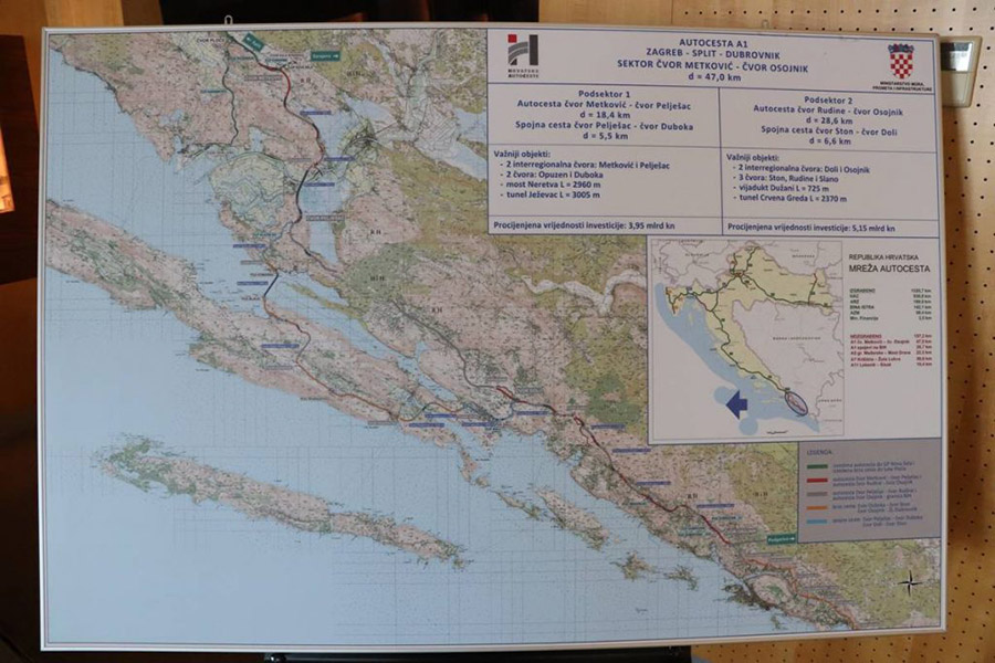 ”Studija izvodljivosti je gotova te ju je predsjednik uprave Hrvatskih autocesta Boris Huzjan prezentirao županu Dubroslaviću i gradonačelnicima i načenicima. Ukupna vrijednost izgradnje autoceste do Dubrovnika bit će oko 9 milijardi kuna. Sada slijedi priprema daljnje dokumentacije”, napomenuo je ministar te dodao kako su projekti izgradnje Pelješkog mosta i rekonstrukcije Zračne luke Dubrovnik u potpunosti obilježili financijsku omotnicu 2014. – 2020.