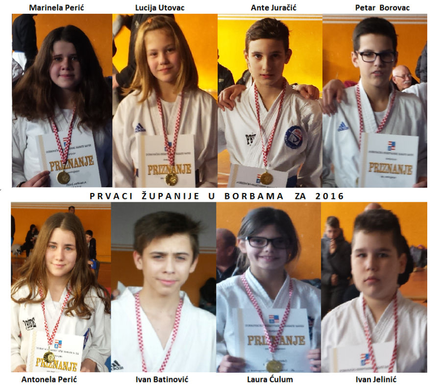 Zlatne medalje u katama osvojili su Marko Ilić u kategoriji mlađi učenici, Mihaela Marević u kategoriji učenice, Ivan Bebić u kategoriji učenici, Luka Marević u kategoriji mlađi kadeti, a u borbama Ana Bebić u kategoriji mlađe učenice +36, Ivana Ilić u kategoriji učenice +44, Ivan Bebić u kategoriji učenici -42, Matea Bebić u kategoriji mlađe kadetkinje -50, Petra Bebić u kategoriji mlađe kadetkinje -55, Ivan Marević u kategoriji kadeti -70, Petar Jeramaz u kategoriji seniori -84 te Mladen Kolovrat u apsolutnoj kategoriji.