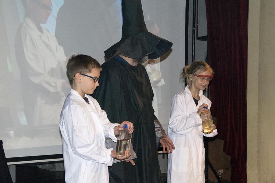 Radnja je smještena u čarobnjačko-alkemičarsku akademiju na kojoj studenti pokušavaju svladati tajne zanata te svome strogom profesoru demonstrirati što su naučili. Različite kemijske reakcije na zanimljiv i duhovit način prikazane su kao čarolije pa je sigurno da će se među mnogobrojnom mladom publikom naći i onih koje će to zainteresirati za studij na PMF-u, što je i svrha te izvrsne predstave.