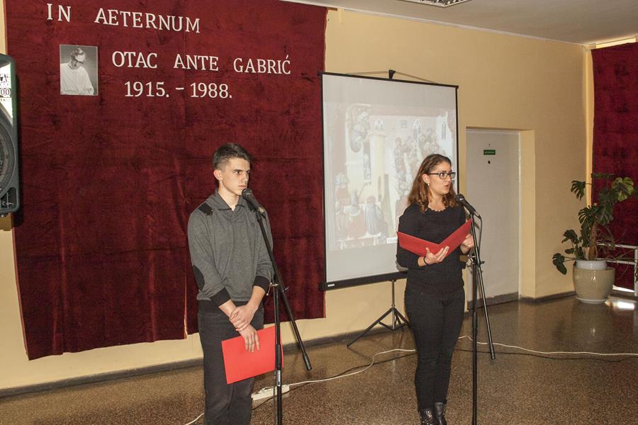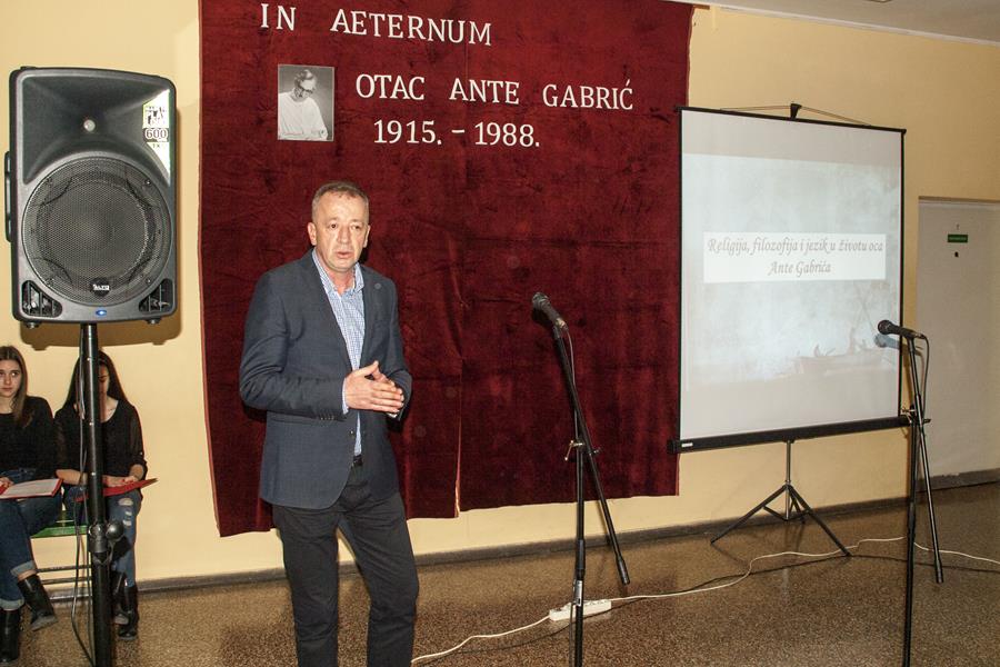 Nakon pozdrava i uvodnih riječi ravnatelja prof. Joze Jurkovića o životu i djelovanju oca Ante Gabrića uslijedio je prigodan program u kojemu su sudjelovali učenici: Marijeta Kežić, Iva Zovko, Anđela Maslać, Mihaela Marić, Mirela Popović, Andrija Raguž i Ivan Bebić, dok su ga pripremili profesorica glazbene kulture Vanja Gabrić, vjeroučitelj prof. Zlatko Tomić, profesorice filozofije Senka Rodin i Kristina Družijanić te profesorice hrvatskoga jezika Lidija Puljan i Martina Pačić.