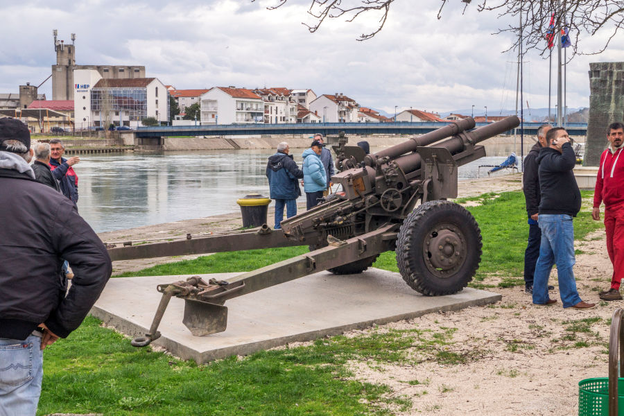 3.3.2016. - Na inicijativu članova Udruge veterana IV. gardijske brigade, podružnice DNŽ, i skupine građana danas je na Velikoj rivi na prije pripremljeno AB postolje postavljena haubica od 105 mm.