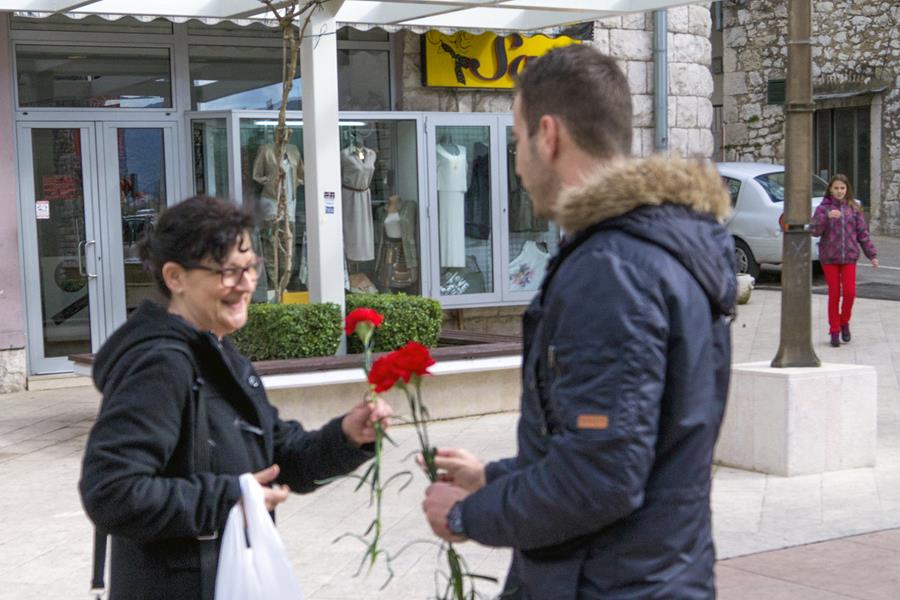 8.3.2016. - Darivanjem svojih sugrađanka crvenim karanfilima ili, po metkovski, garofulima danas su članovi GO SDP-a Metković na Trgu kralja Tomislava obilježili Međunarodni dan žena