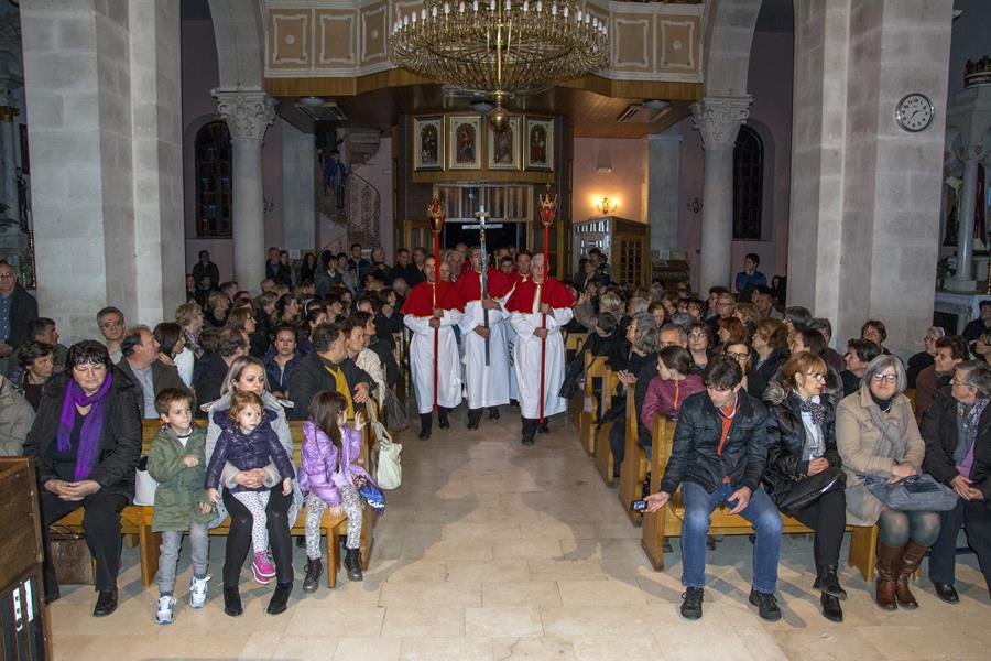 Nakon što ih je najavio Milan Kapović, ravnatelj Ustanove za kulturu i sport, čiji je GKS uz Župu sv. Ilije suorganizator koncerta, kantaduri su pjevajući Slava čast i hvala ti krenuli od crkvenoga ulaza prema oltaru, noseći sobom maslinove ili palmine grančice. Pjesme su se uz prigodne radnje smjenjivale jedna za drugom pa su vjernici, koji su potpuno ispunili crkvu, njima vođeni prolazili muku Isusovu koja je vodila ka uskrsnuću. Nizale su se Smiluj se meni Bože, Muka Gospodina našega Isusa Krista, Prosti moj Bože, Gospodine smiluj se, Plač Jeremije proroka, Zazivi, Usta moja, Križu virni, Evo drvo križa, Gospin plač, O propeti – puče moj, Aleluja, Aleluja, Aleluja, a nakon Tebe Boga hvalimo crkvom se prolomio dugotrajan pljesak. Tražio se dodatak, na što su Hvarani otpjevali O propeti - Budući pokopan Gospodin, u čemu im se pridružio i župnik fra Petar te mnogi iz publike. Svakako večer za pamćenje uoči Velikoga tjedna.