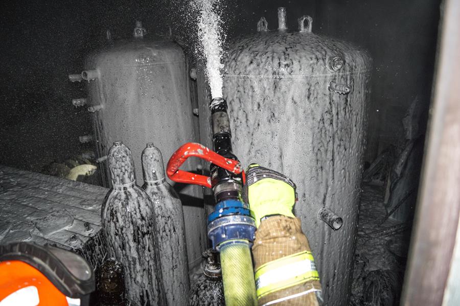 Na požarište su u kratkome roku stigli vatrogasci s trima vatrogasnim vozilima te započeli s gašenjem pjenom i prahom. Naime u kotlovnici su se osim rezervoara s loživim uljem nalazile i boce s acetilenom koje su predstavljale veliku opasnost. Nasreću nije došlo do njihova zapaljenja pa je požar ugašen u 2:10 poslije ponoći.