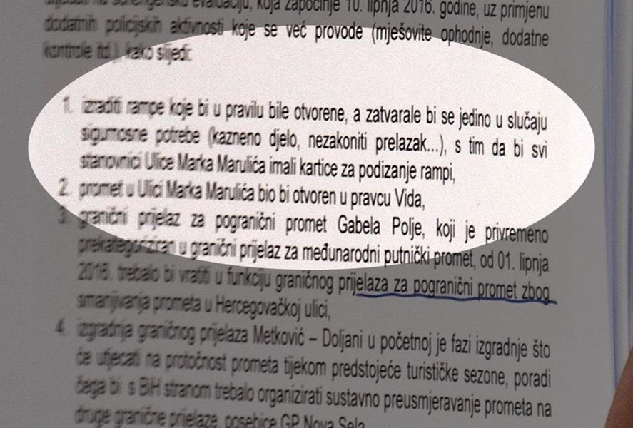 8.4.2016. - Danas je u posjet Metkoviću stigao ministar unutarnjih poslova Vlaho Orepić kako bi s Gradskom upravom i stanovnicima Ulice Marka Marulića razgovarao o budućemu pograničnom režimu u toj ulici te ga pokušao učiniti što bezbolnijim za tamošnje stanovništvo, ali i za ostale građane koji u toj ulici imaju rodbinu i prijatelje ili tamo idu poslom.