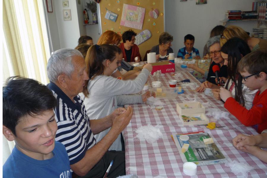 29.4.2016. - Obilježavajući Europski dan međugeneracijske solidarnosti u okviru Organiziranih dnevnih aktivnosti za starije osobe, UdrugaOtac Ante Gabrić ugostila jer učenike OŠ Stjepana Radića s učiteljicom engleskoga jezika Julitom Bakalar.