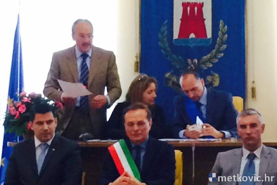 3.5.2016. - Ovih dana u Italiji borave zamjenik gradonačelnice Metkovića Nikola Grmoja i gradonačelnik Ploča Krešimir Vejić, koji su prije dva dana u Ortoni potpisali Povelju o bratimljenju naših dvaju gradova s Ortonom.