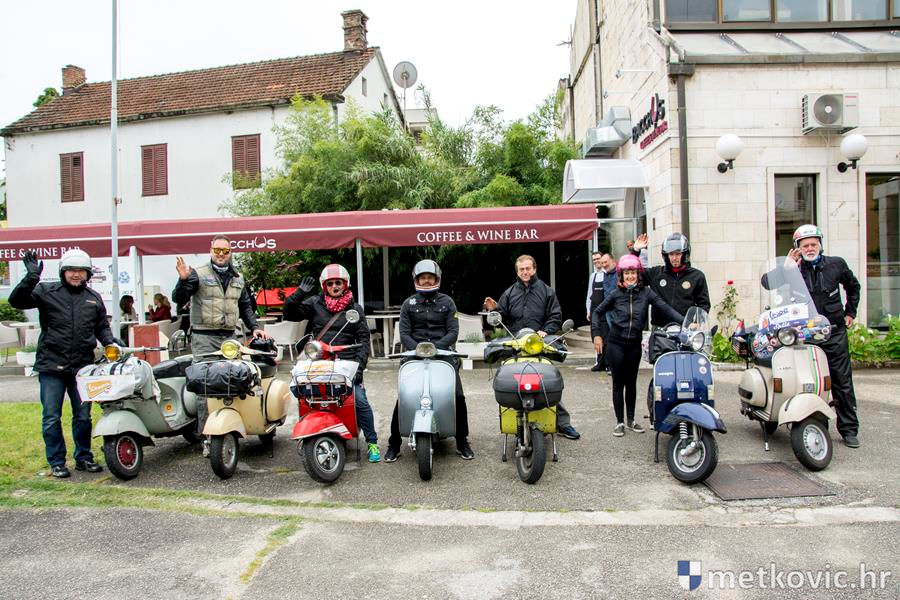 Mi smo ih u kafiću Športskoj ulici zatekli s predsjednikom metkovskoga Kluba Daliborom Dadom Skočibušićem i saznali da su iz Umaga krenuli u Dubrovnik na druženje vespaša. Riječ je o turi Vespa oldies Adriatic tour podijeljenoj u sedam etapa, od kojih je jedna završavala u Metkoviću. Kako i sam naziv govori, u Metković su stigli na Vespama najrazličitijih modela i godišta proizvodnje. Jedna od njih je ruska kopija Vespe, pravi kovački rad, koja je čak trideset kilograma teža od ostalih. Budući da joj je istočnonjemački motor bio nedovoljno jak, vlasnik je ugradio talijanski.