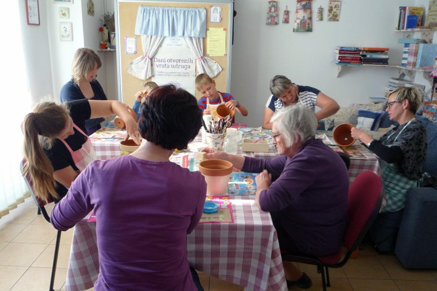 U poslijepodnevnim satima održana je izložba uradaka s radionica i savjetovanje zainteresiranih za pomoć u kući i organiziranim dnevnim aktivnostima za starije. Druženje se završilo kreativnim radionicama.