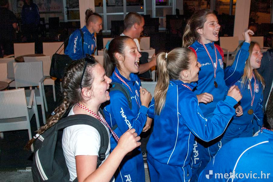 Metković, 30.5.2016. - Jutros nešto prije četiri sata iz Svetoga Martina na Muri vratile su se kadetkinje i vodstvo ŽNK Neretva okićeni brončanim medaljama. U Sportskoj ulici dočekali su ih roditelji i rodbina, a kako je slavlje izgledalo zabilježio je Josip Vučković.