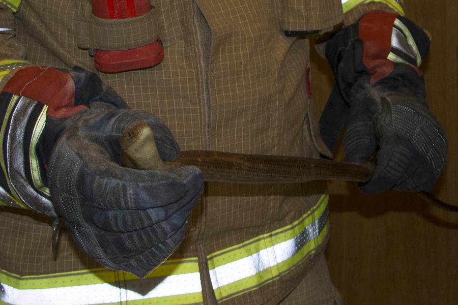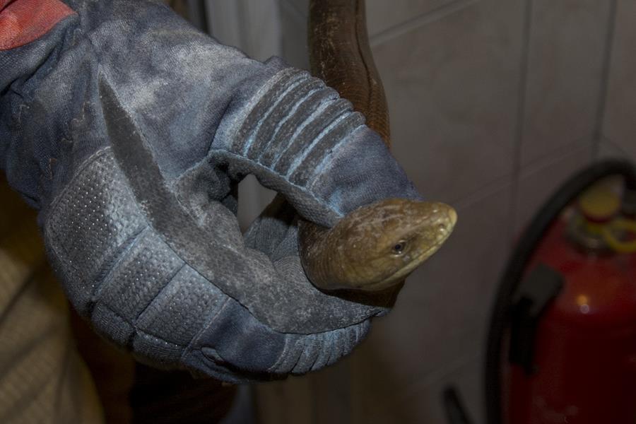 2.6.2016. - Jutros su metkovski profesionalni vatrogasci imali neobičnu intervenciju. Iz jednoga metkovskog poslovnog prostora javljeno im je da u pomoćnoj prostoriji imaju zmiju.