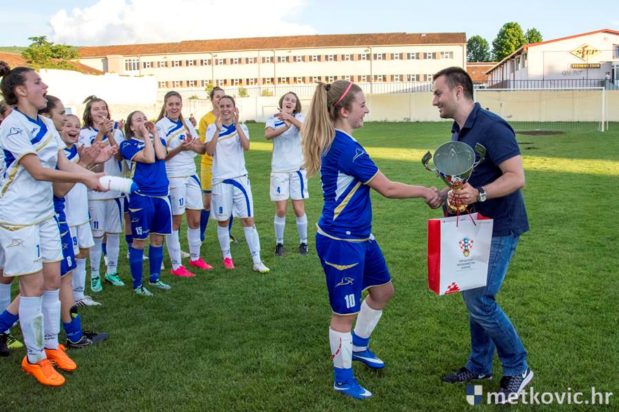 Nakon utakmice, kapetanici plavo-bijelih Ivani Kolovrat pehar prvakinja uručio je povjerenik II. HNL lige jug i član Komisije za ženski nogomet Damir Stipković. Tako je metkovski ženski nogomet, nakon sjajnoga uspjeha naših kadetkinja koje su treće u Hrvatskoj, na najbolji način okrunio drugu godišnjicu svoga postojanja. Slično priči iz 1963. kada su dvojica zanesenjaka u Metković dovela rukomet kojim su obilježili naš grad. Sigurni smo da će tako biti i sa ženskim nogometom jer zanesenjaci su uvijek na cijeni, bez obzira na to što živimo u svijetu u kojemu je novac jedina mjera vrijednosti.