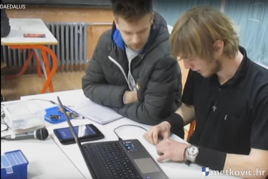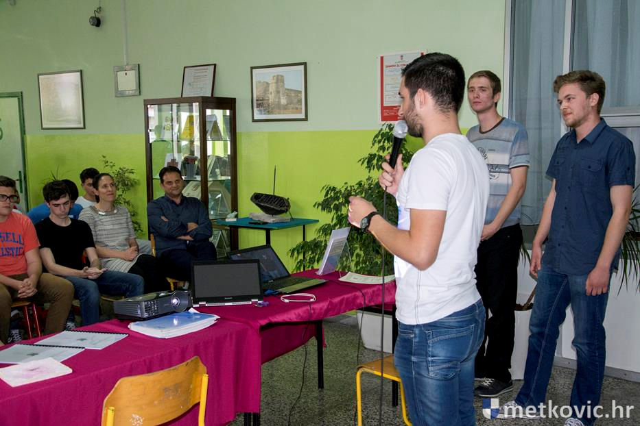 Projekt Daedalus jučer su u SŠ Metković predstavili Josip Tošić, vođa tima zadužen za elektroniku, Vlaho Matić, zadužen za financijski menadžment i vanjski suradnik Lovre Rado, koji je obavio poslove web-dizajnera i PR-a.