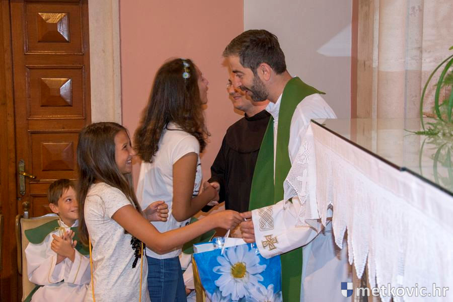 Prigodnim pjesmama i darovima od svojih se svećenika oprostio Mali župni zbor, a nakon njihovih emotivnih opraštanja od župljana nagrađeni su velikim pljeskom. Našim fratrima želimo da u novim sredinama budu isto tako dobro primljeni kao što su to bili u Metkoviću.