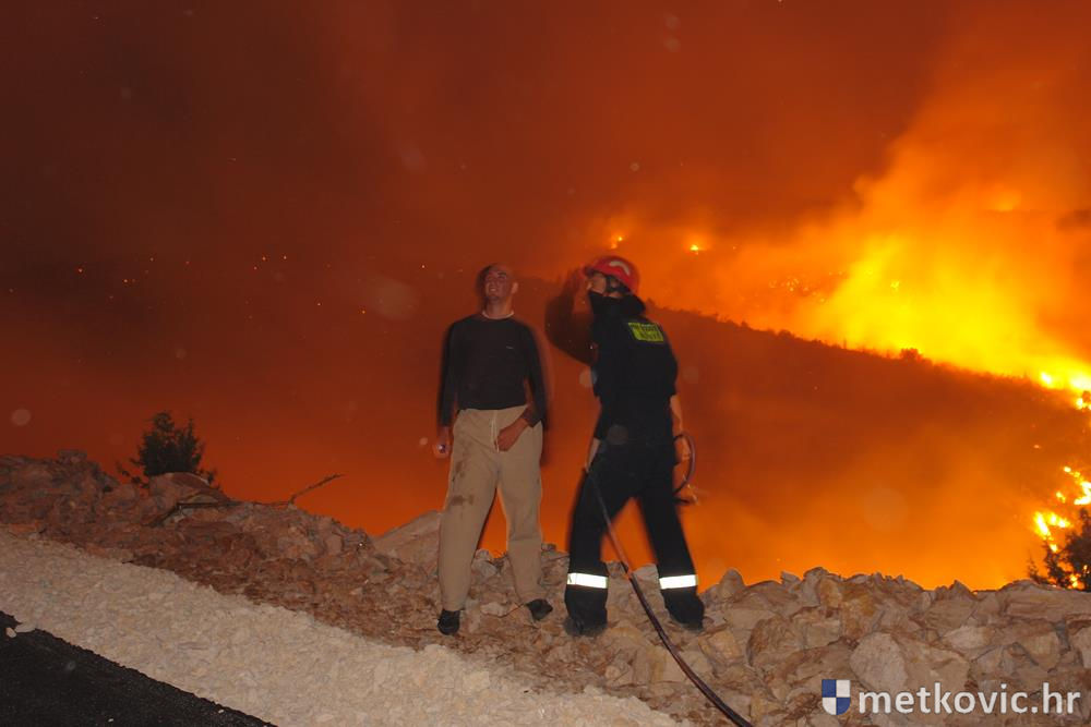 4.8.2016. - Predvečer smo otišli u Glušce i tamo zatekli zapovjednika JVP-a Metkovć Nikicu Zovka koji nam je rekao da su metkovski i čapljinski vatrogasci na terenu i da je dobro što nema vjetra, no radi se o nepristupačnu terenu pa je gašenje otežano. Nadamo se da se neće ponoviti ljeto 2007.
