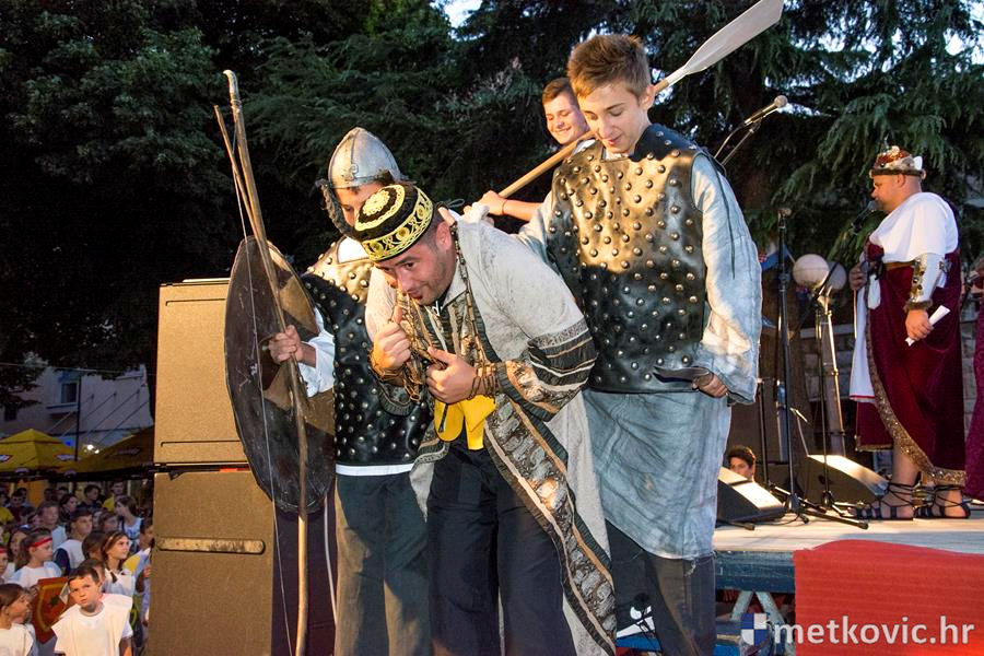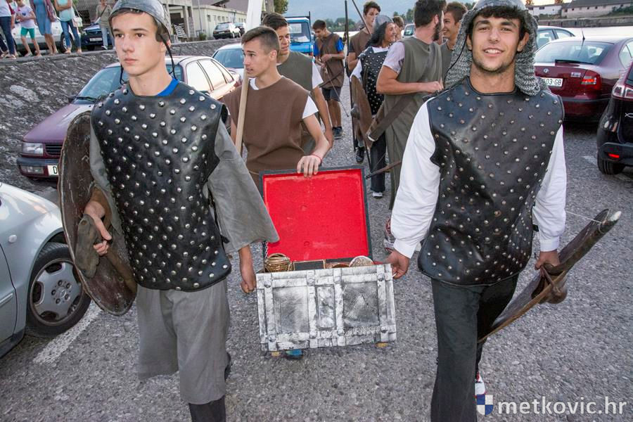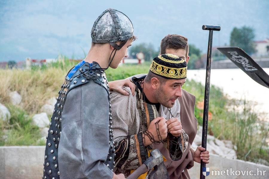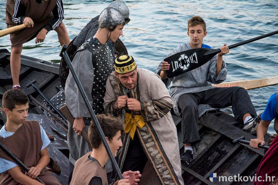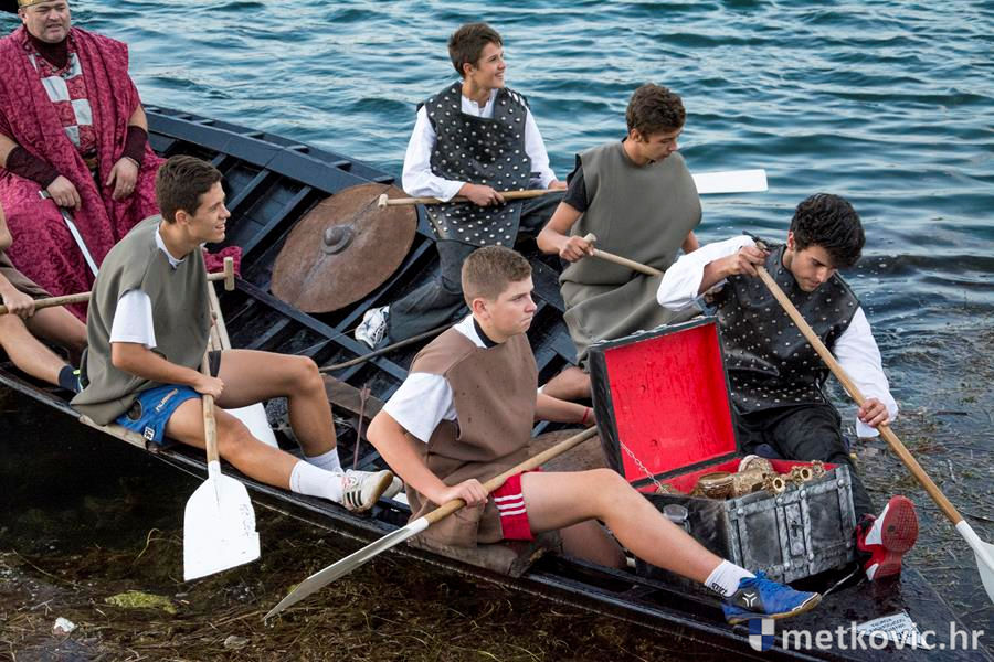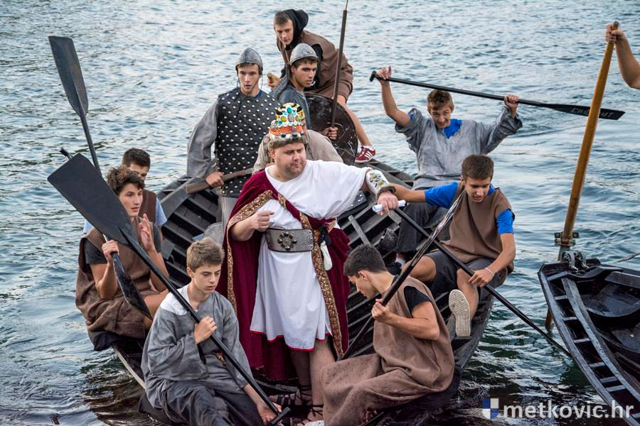 12.8.2016. - Jučer u predvečerje Neretvom su u Metković doplovili neretvanski gusari dovodeći sa sobom zarobljenoga dužda i bogat plijen. Na obali su ih dočekali mali neretvanski gusari i sproveli do Trga kralja Tomislava. Dužd je stavljen u okove i za njega će se tražiti otkupnina.