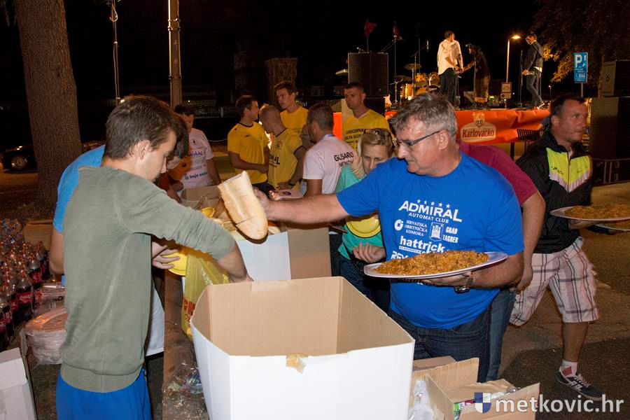 Program na Trgu nastavljen je tradicionalnom Noći lađara, na kojoj je za sve lađarske ekipe što sudjeluju na sutrašnjem Maratonu organizirana zajednička večera i druženje uz glazbu grupe Versi.