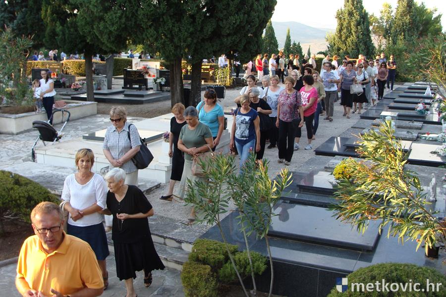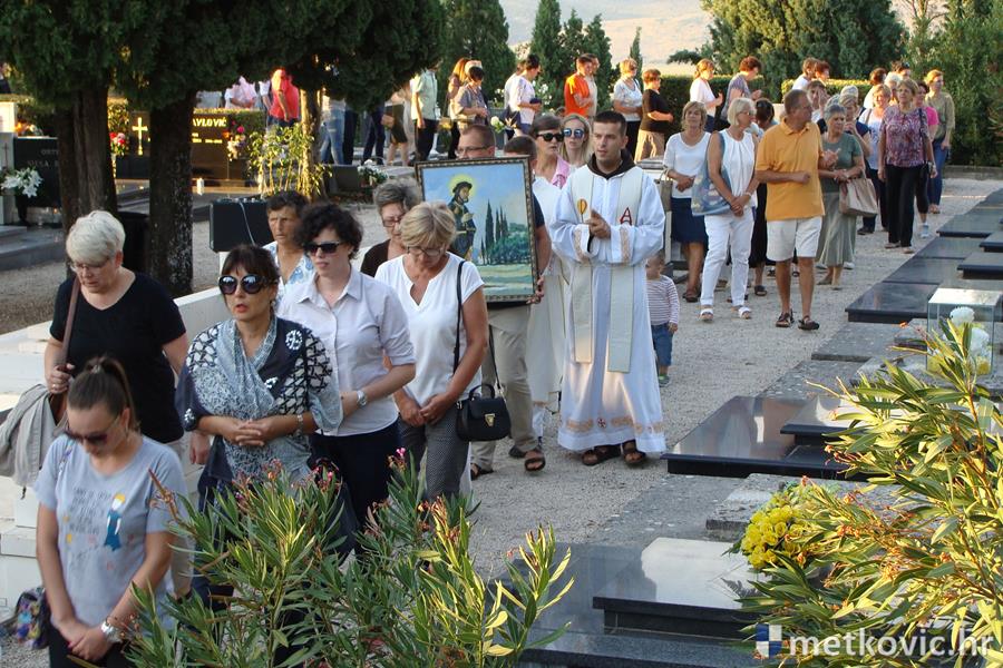 Metković, 17.8.2016. - Na Gradskome groblju sv. Ivana Nepomuka jučer je služena tradicionalna misa na Sv. Roka, kojoj je prethodila procesija sa svečevom slikom. Misu je u koncelebraciji fra Kristijana Šilića služio fra Dujo Jukić.