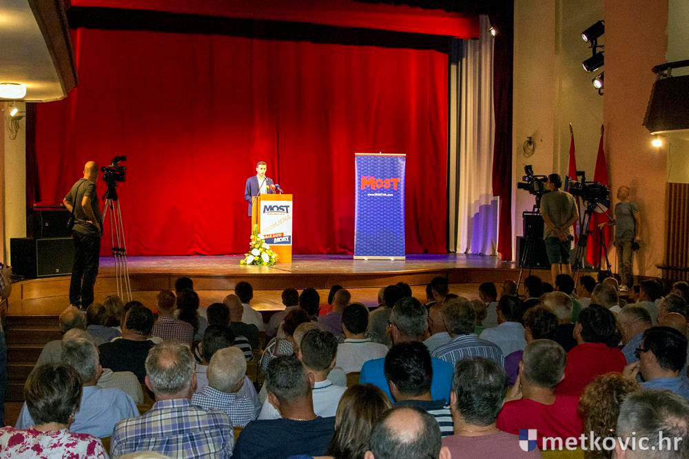 20.8.2016. - Sinoć je u kazališnoj dvorani Gradskoga kulturnog središta Metković održan predizborni skup Mosta nezavisnih lista, kako se moglo čuti, jedan od rijetkih klasičnih predizbornih skupova jer će Most u predizbornoj kampanji preferirati druženje s biračima.