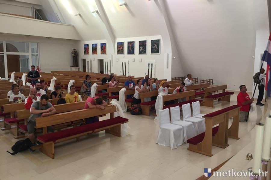 U župi sv. Nikole Biskupa primio ih je i pozdravio župnik don Davor Bilandžić, dok su za noćenje bili raspoređeni po obiteljima. U župnoj crkvi pridružili su se misnome slavlju, a danas su nakon jutarnje mise pješice krenuli kroz Metković pa Napoleonovom cestom kroz zažapski kraj na Vukov klanac te prema Neumu. Odredište im je Dubrovnik, a na svome dugačkom hodočašću posjećivali su sva marijanska svetišta.