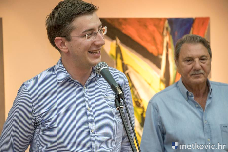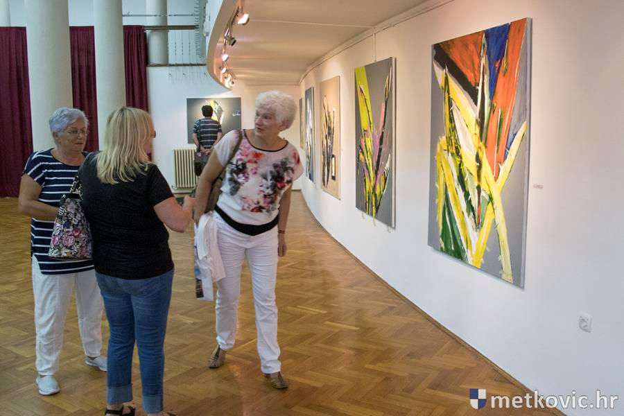 17.9.2016. - Na sinoć otvorenoj izložbi u Galeriji GKS-a Metković dubrovački slikar Tonko Smokvina izložio je 28 ulja na platnu iz svoga ciklusa Nemir, od toga šest diptiha.