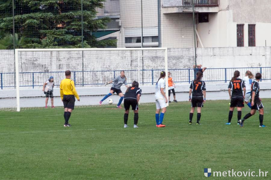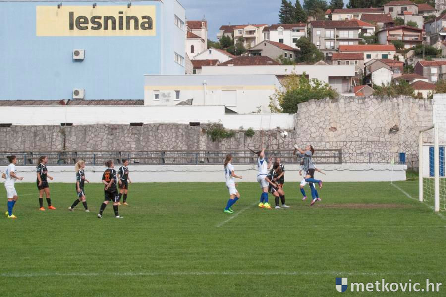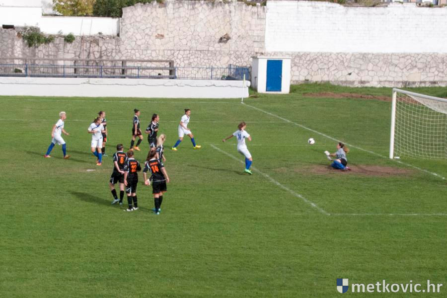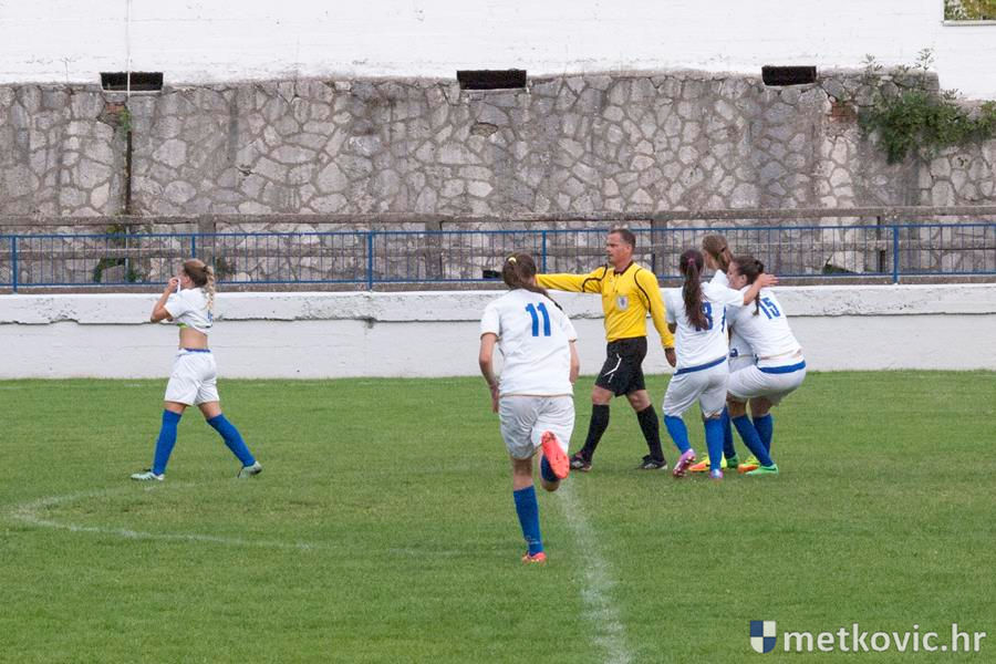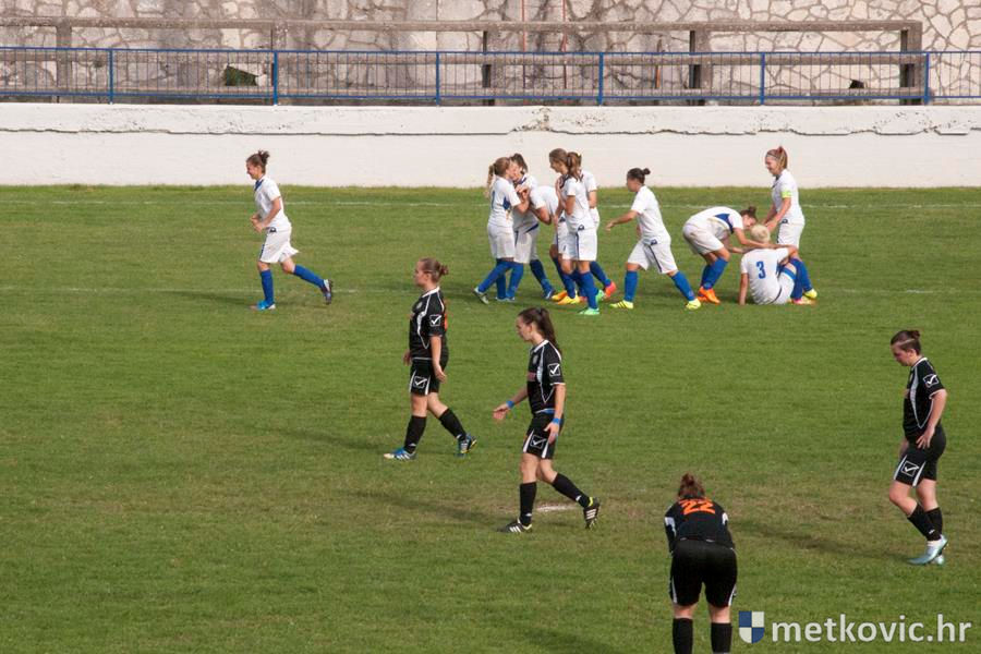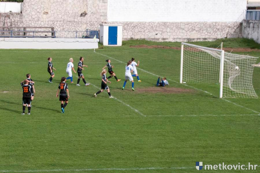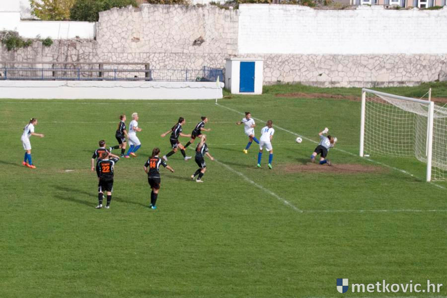 U vodstvo prve dolaze gošće pogotkom Petre Mandić Jelaske u sedmoj minuti, ali domaće igračice nakon prekršaja u šesnaestercu gošća ipak uspijevaju 38. minuti susreta izjednačiti pogotkom Ivane Kolovrat s bijele točke. Drugo je poluvrijeme započelo čvrstim dvobojima za loptu, ali volja i upornost više se isplatila gošćama koje u 62. minuti preko Ane Marije Kalamize rezultat podižu na 1:2. Samo osam minuta poslije domaće ponovno izjednačuju, taj put pogodak postiže Veronika Krndelj.