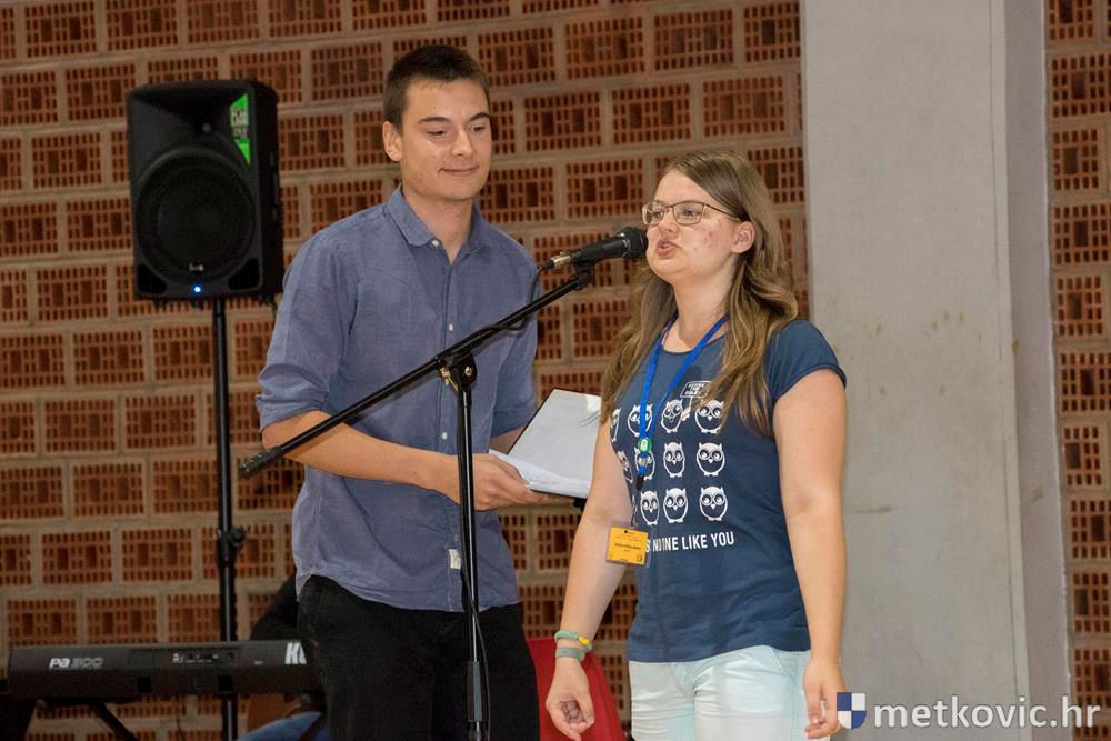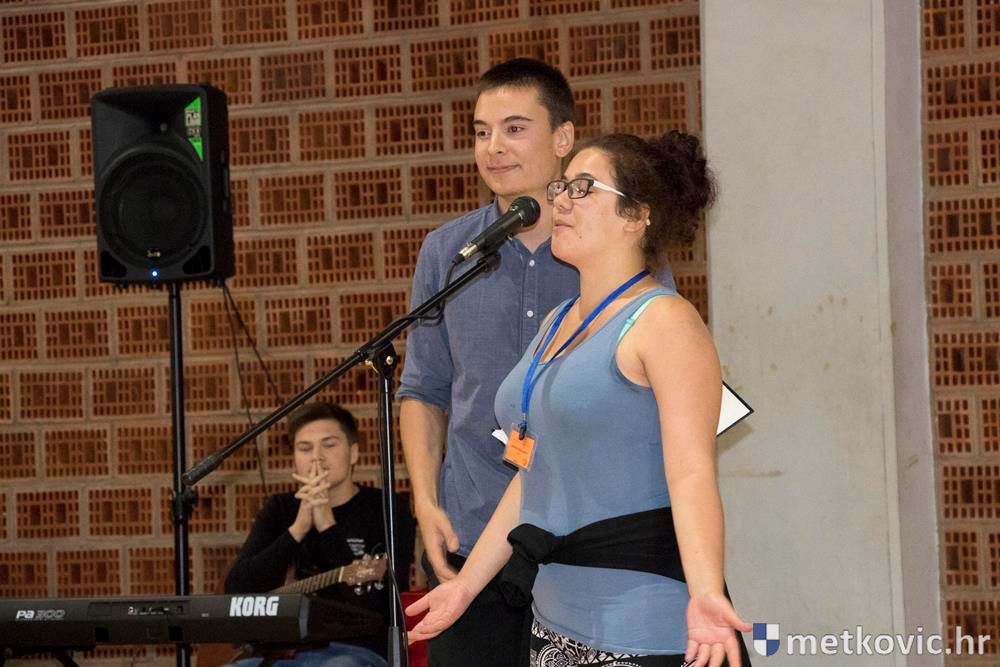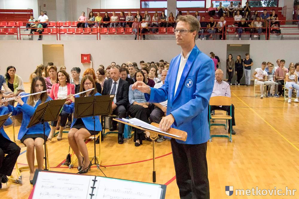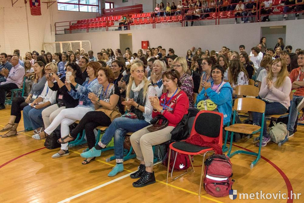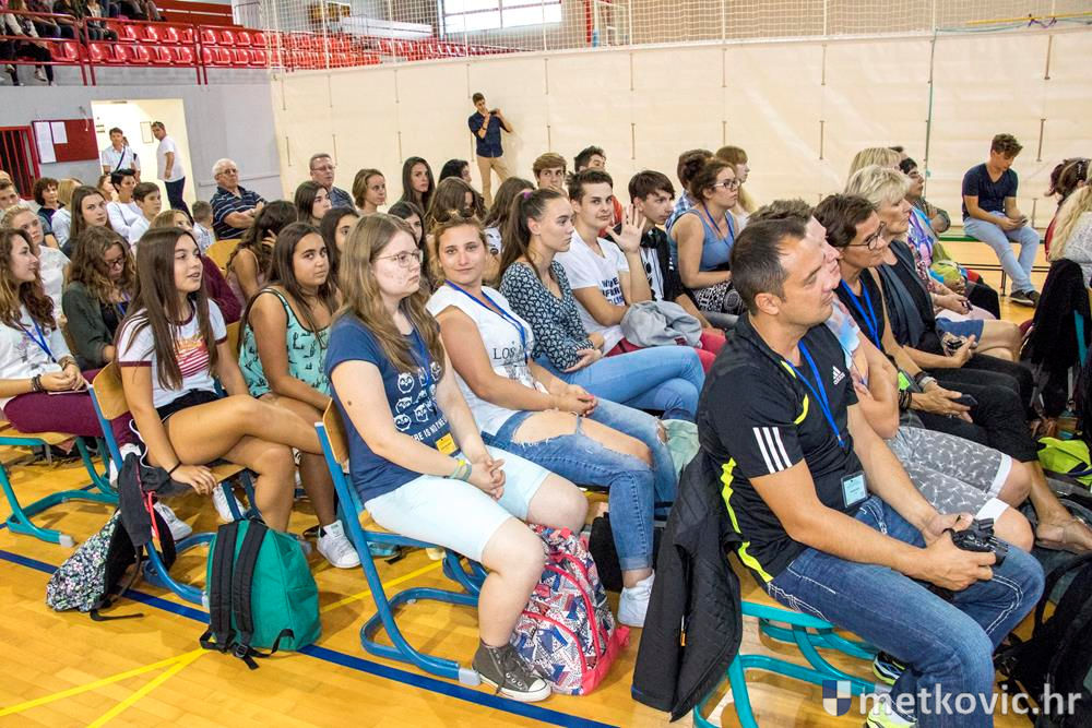 Sinoć je u gimnazijskoj sportskoj dvorani održana završna svečanost, koju je uveličao nastup Gradske glazbe Metković pod ravnanjem Stipana Krmića. Svečanost je započela himnom EU Oda radosti u izvođenju naših glazbara, nakon čega su učenici izvodili prigodan program na svim jezicima, a glazbari su svirali vesele melodije. Tako se moglo čuti kako se smijemo na devet jezika te Ujevićeve i Šimićeve pjesme na hrvatskome, engleskome i njemačkome, a prikazan je i videouradak o važnosti učenja stranih jezika. Naravno, bilo je puno smijeha i pljeskanja.
