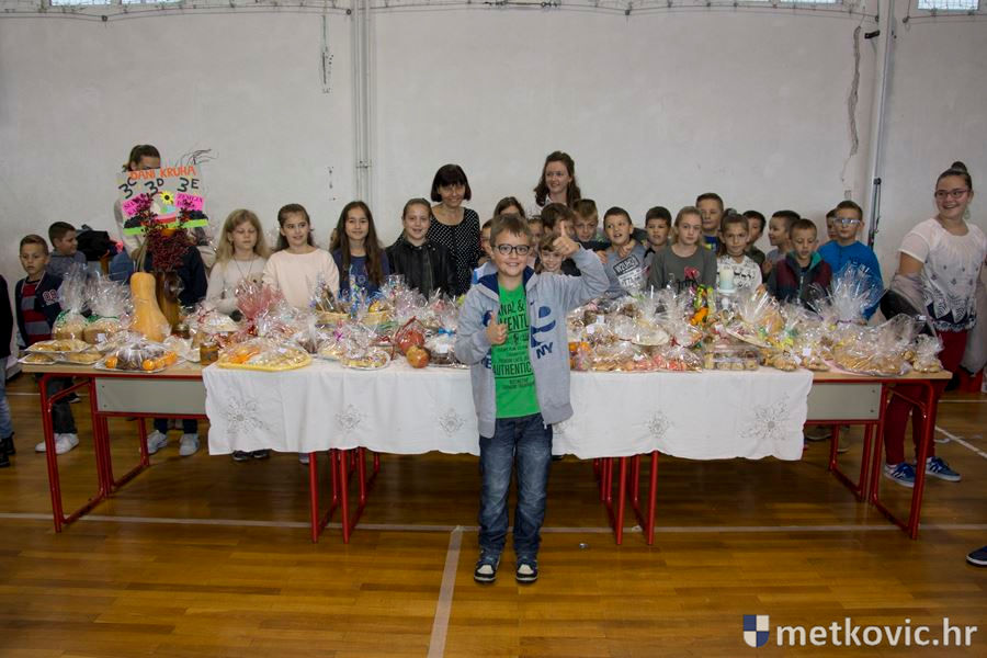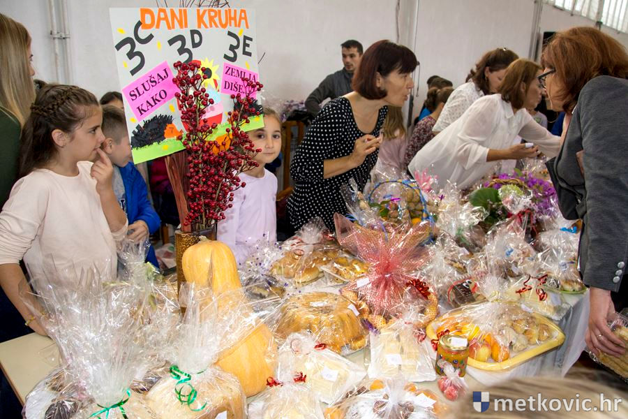 Prije podne učenici od prvoga do osmoga razreda izložili su razna peciva, kolače i jesenske plodove zemlje, a to su kasnije učinili i učenici poslijepodnevne smjene te razred učenika s posebnim potrebama. Ravnateljica Božena Nikoletić pozdravila je učenike i njihove učitelje, zahvalivši i roditeljima koji su svojoj djeci napravili razna peciva i slastice. Potom je župni vikar Župe sv. Ilije Proroka fra Duje Jukić blagoslovio sve nazočne, kao i izložene proizvode.